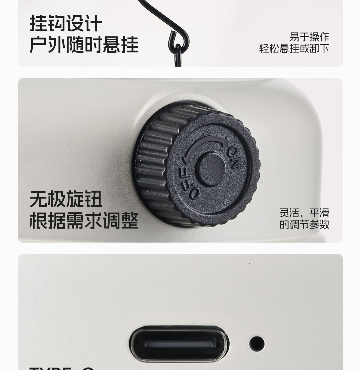 现在都是流行去露营,这款露营气氛灯还是必备的,谈不很亮,但可以营造一个良好的氛围,具体速航还没有长时间使用,待验证。其它都挺好