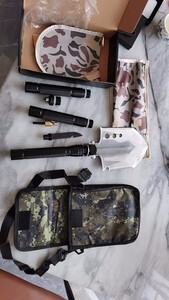 收到货了,刀子,口哨,包装袋,收纳袋,手提包等配件齐全,沉甸甸的,材料很厚实,颜值也很不错,很满意的一次购物,希望能耐用。