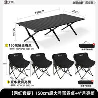 北乐户外露营折叠桌椅套装便携式蛋卷桌野营野炊野餐桌椅子一桌四椅 150CM蛋卷桌黑色+月亮椅*4