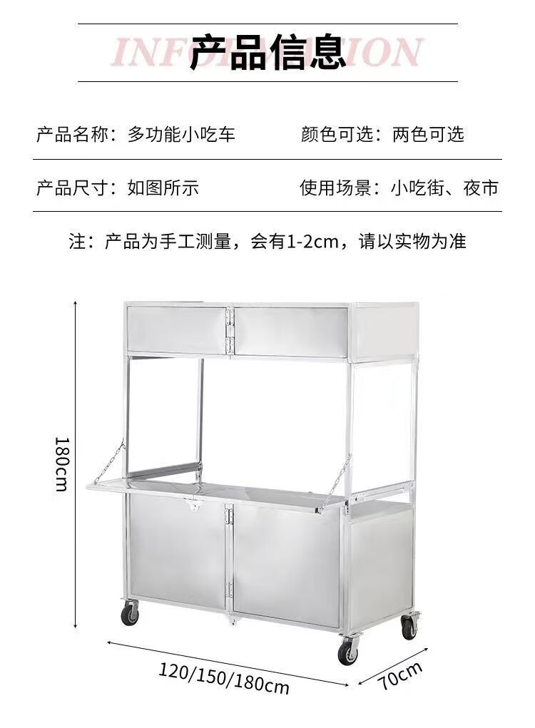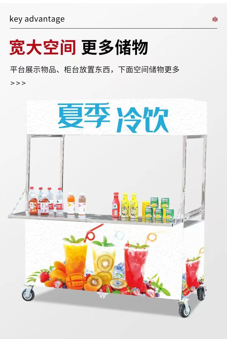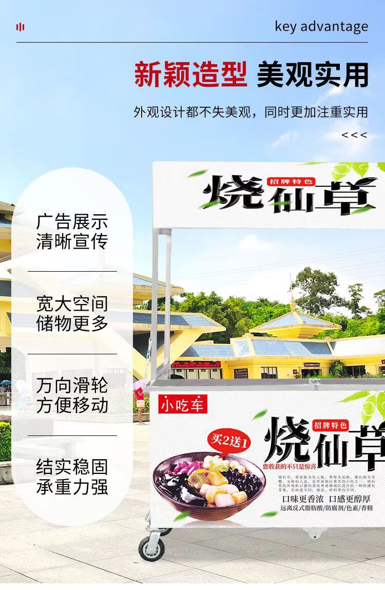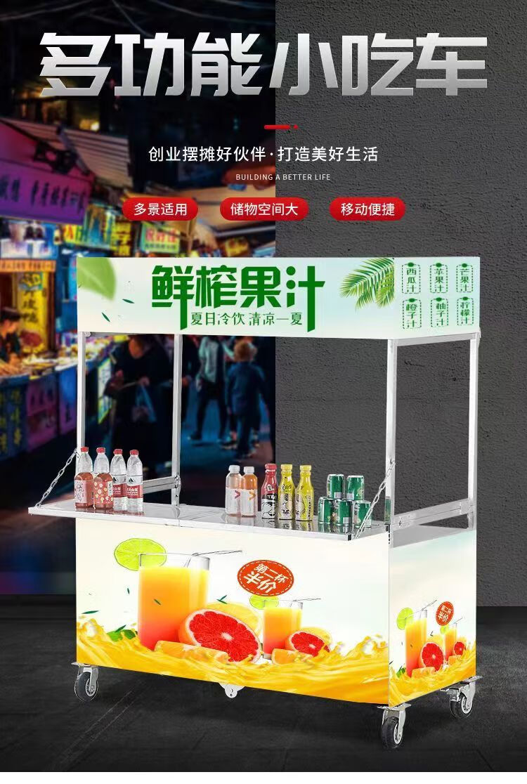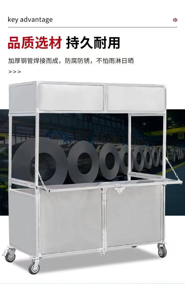 摆摊小推车可折叠夜市地摊移动烤面筋串串冰粉不锈钢手推小吃车 镀锌钢基础款+前台+广告位1.2米