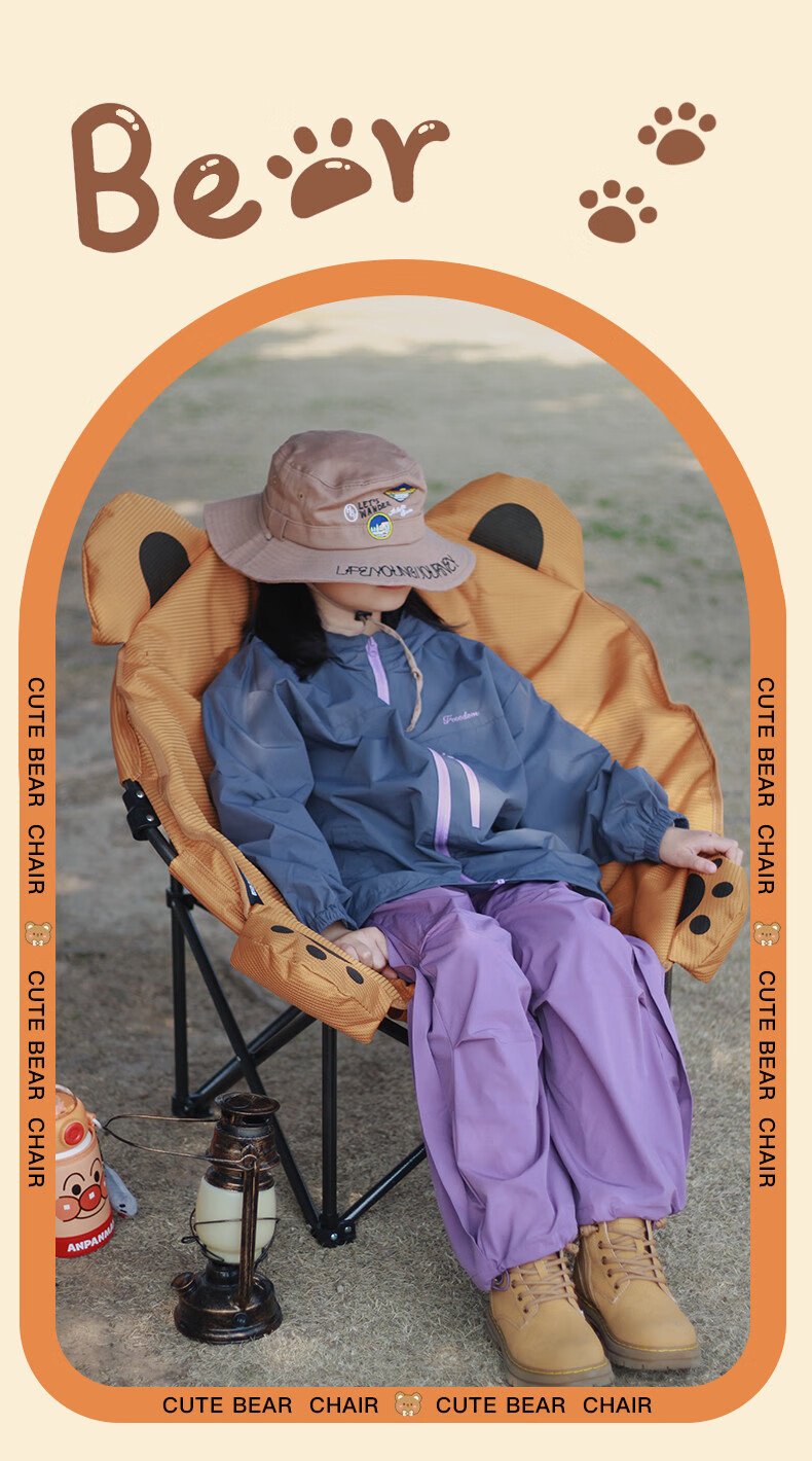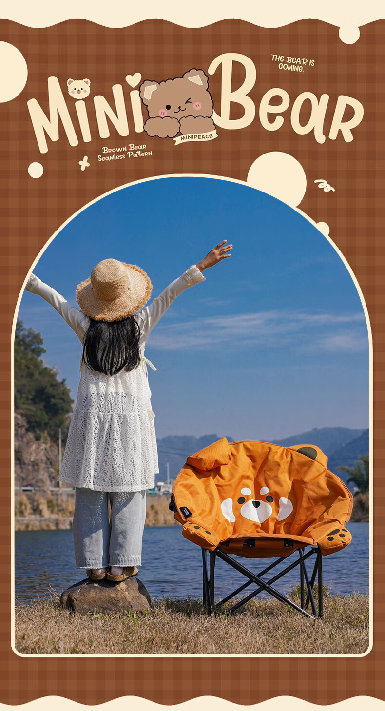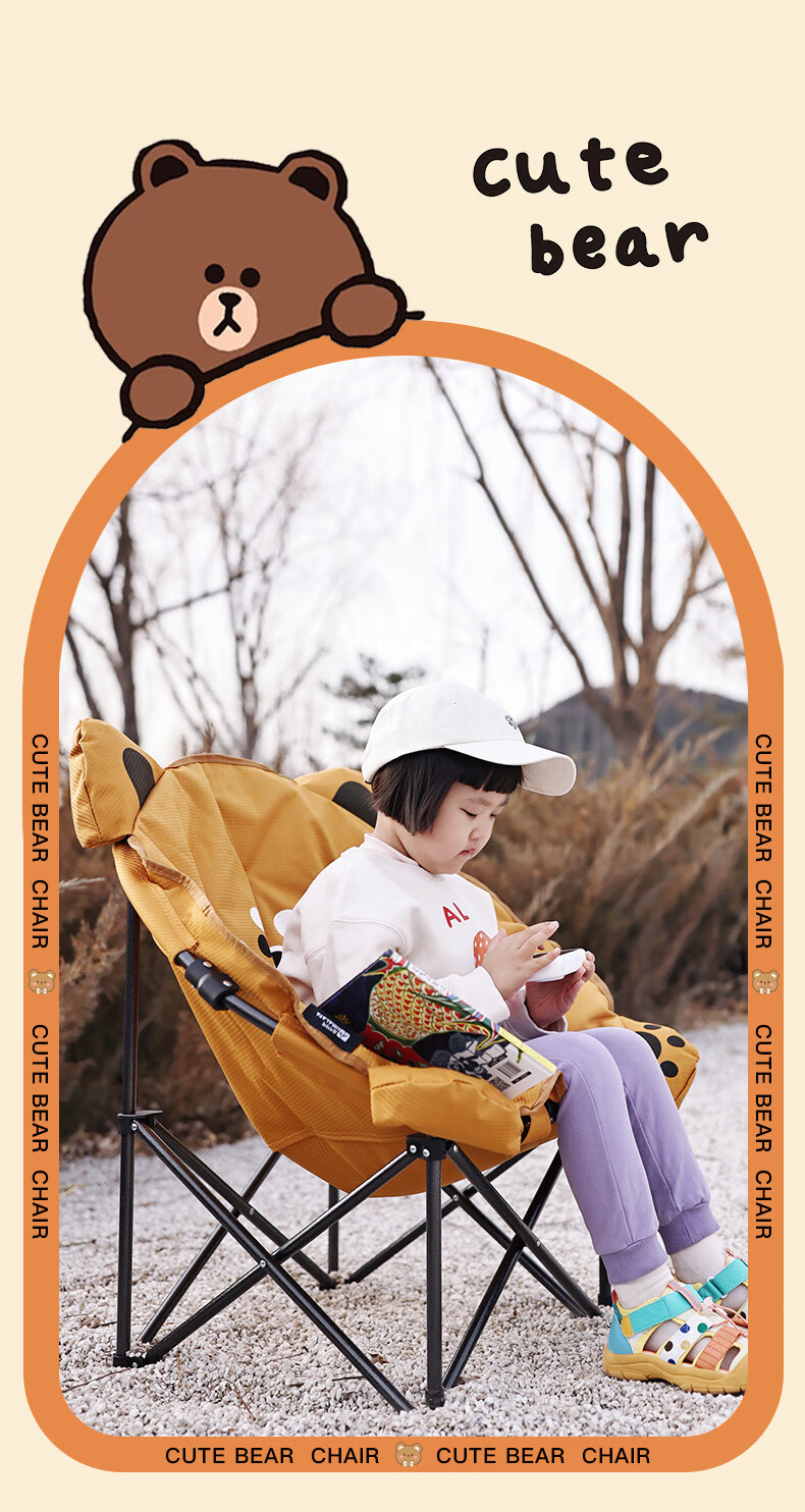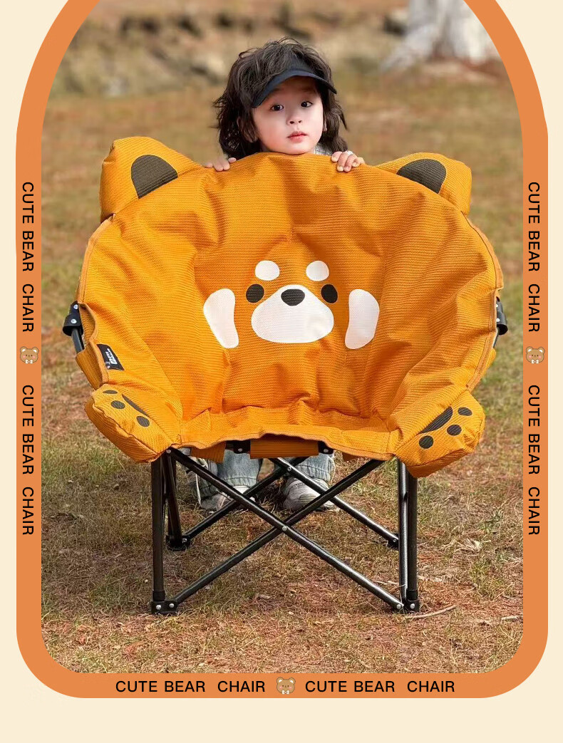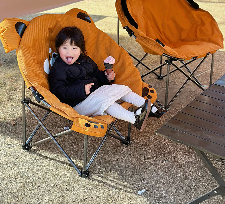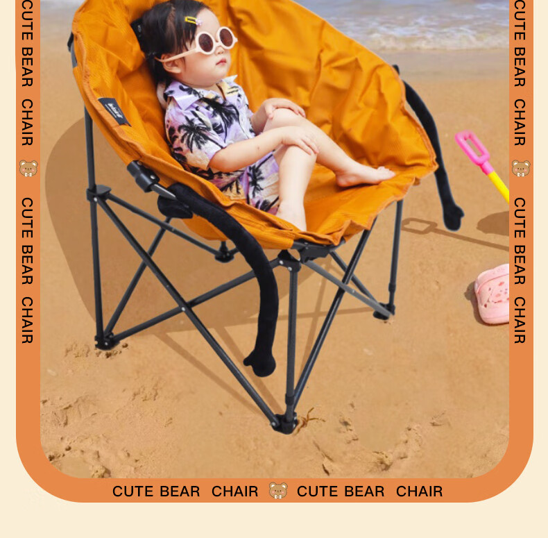 喜马拉雅折叠椅便携凳子户外椅子露营野餐椅儿童月亮椅折叠沙滩椅阳台家用 小熊儿童款蜜姜色