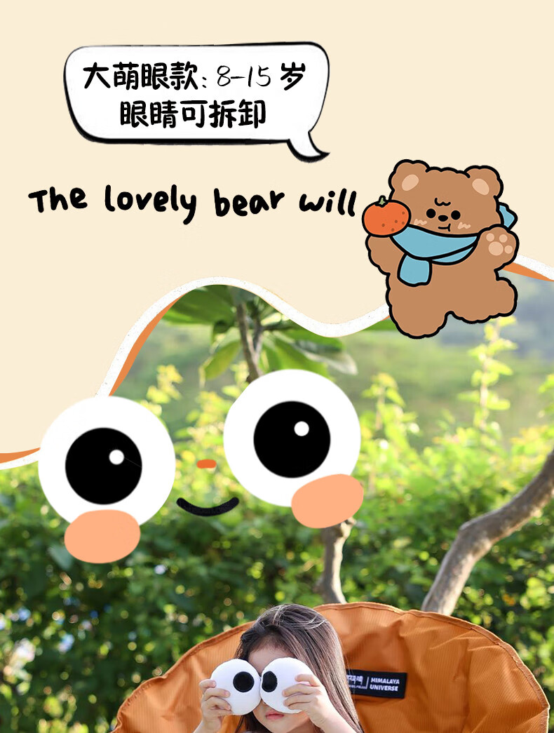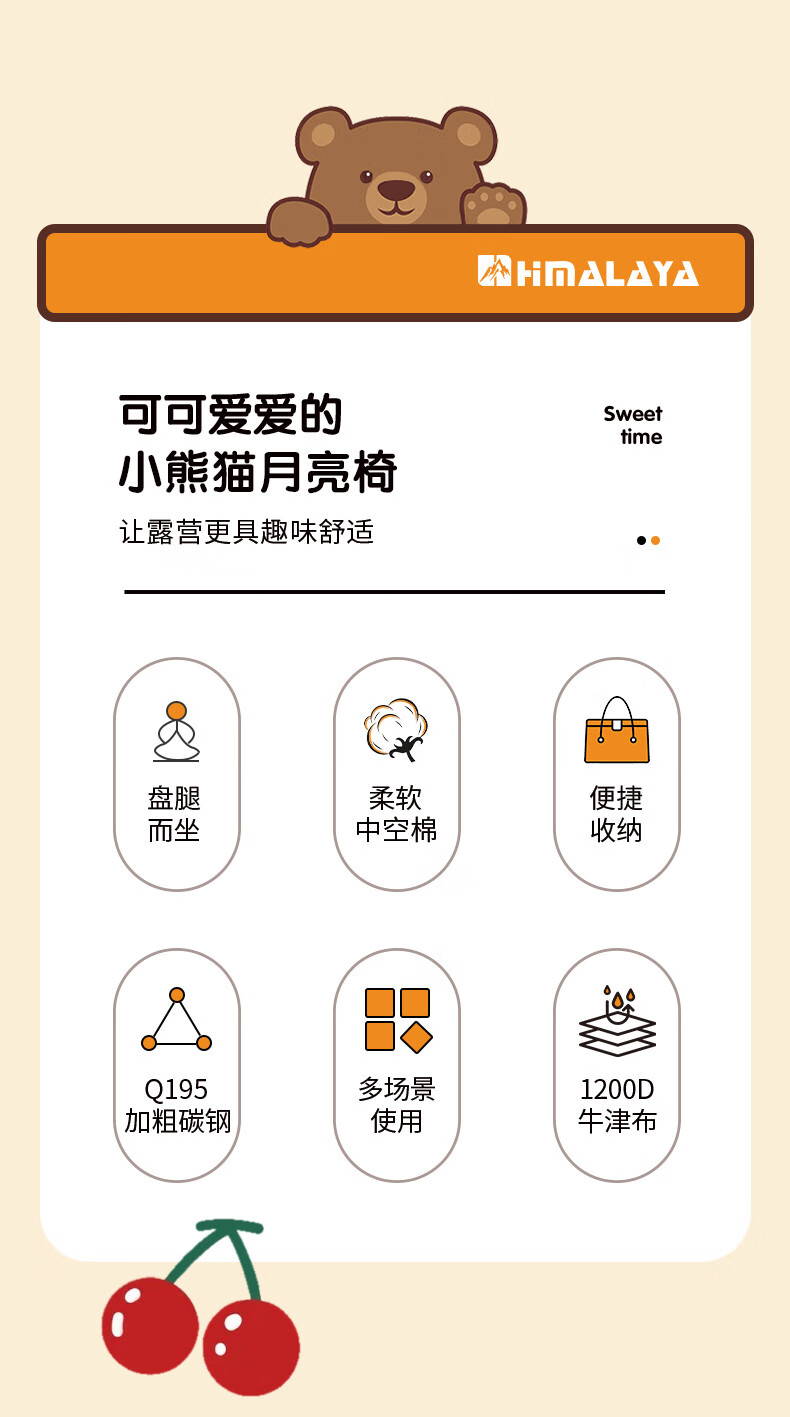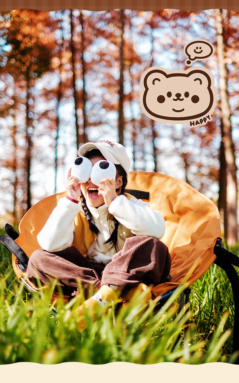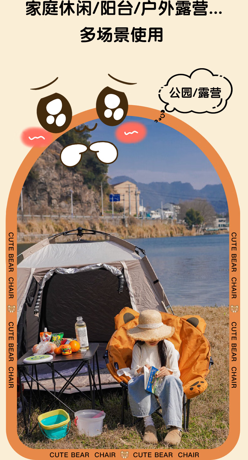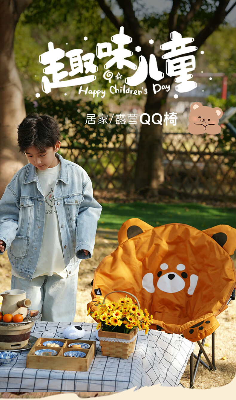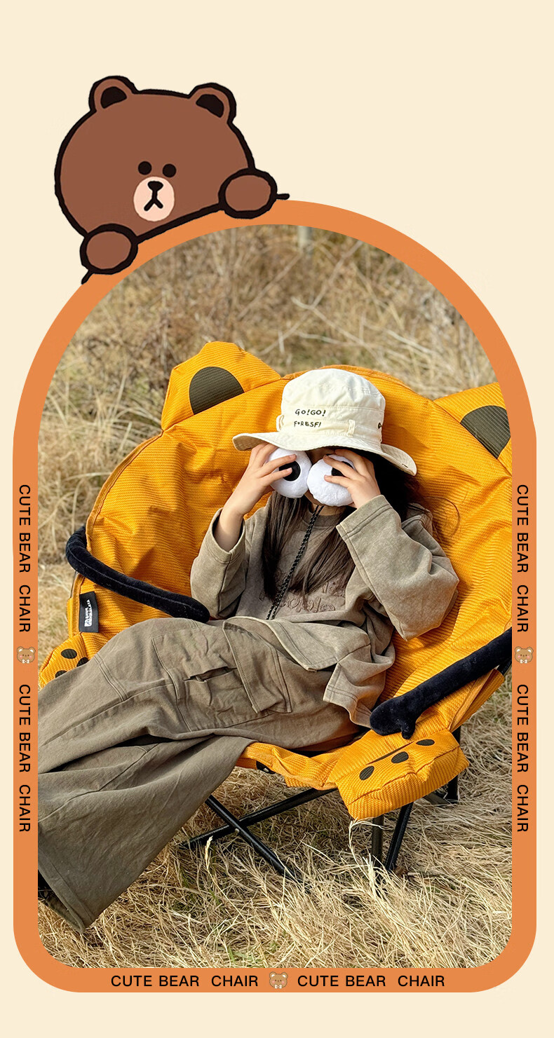 喜马拉雅折叠椅便携凳子户外椅子露营野餐椅儿童月亮椅折叠沙滩椅阳台家用 小熊儿童款蜜姜色