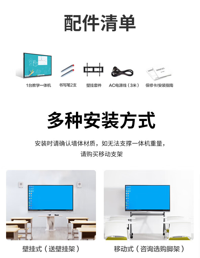 希沃教学触摸一体机 触控会议平板 seewo交互式电子白板 幼教培训电视 通用落地移动支架