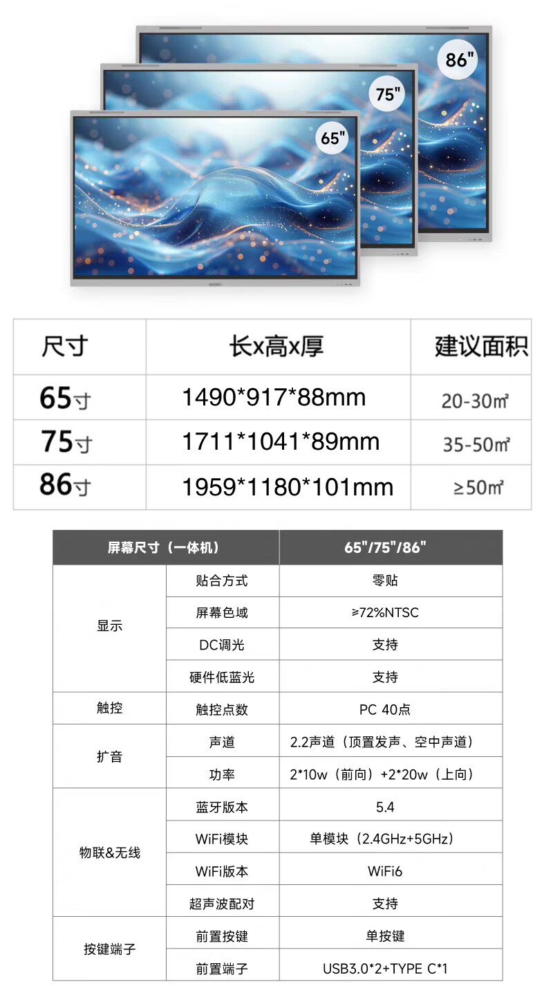 希沃65英寸电子白板多媒体教学触摸可移动电视会议平板一体机投屏器显示触屏4k智能大屏 i7+8G ST33移动支架+翻页笔+无线传屏