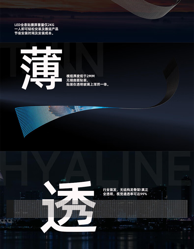 捷宇视讯led透明屏柔性冰屏软屏室内外广告电子屏玻璃晶膜贴膜全彩显示屏 透明屏1平方