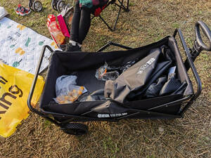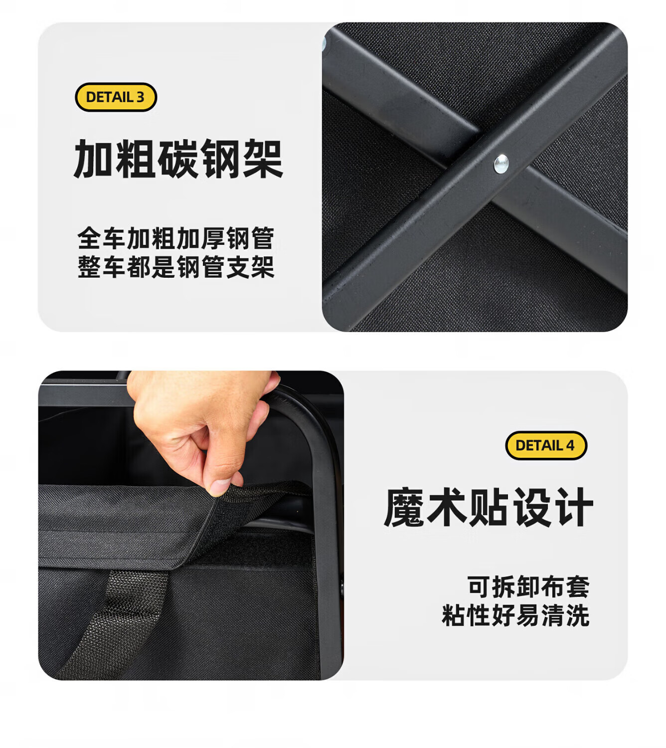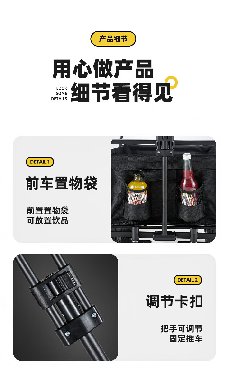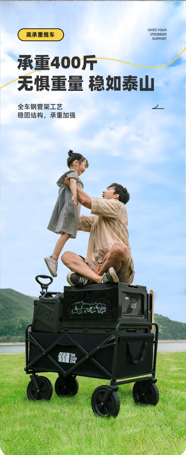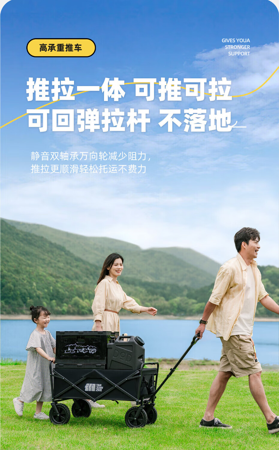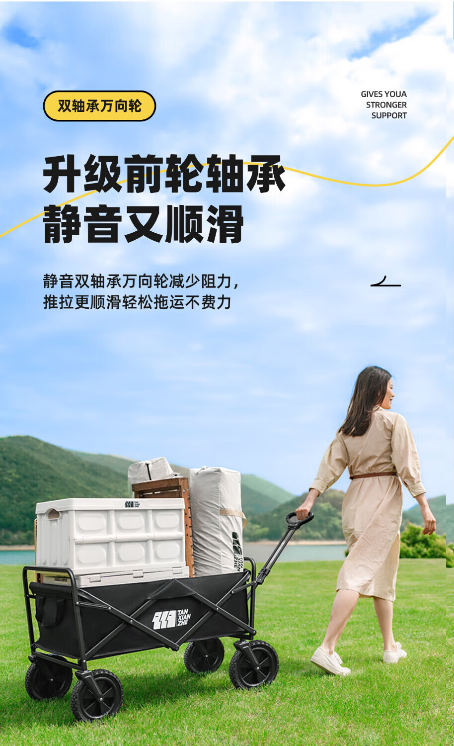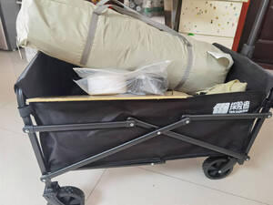 我家的帐篷和椅子都是在他们家购买的,质量不错且性价比很高。这次由于携带物品不便,所以我购买了一个小型露营车。我选择的这个尺寸不大,但日常使用足够。它收合方便,拿回来时直接用,拉杆也可活动。