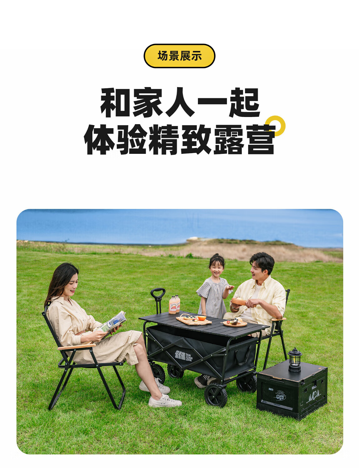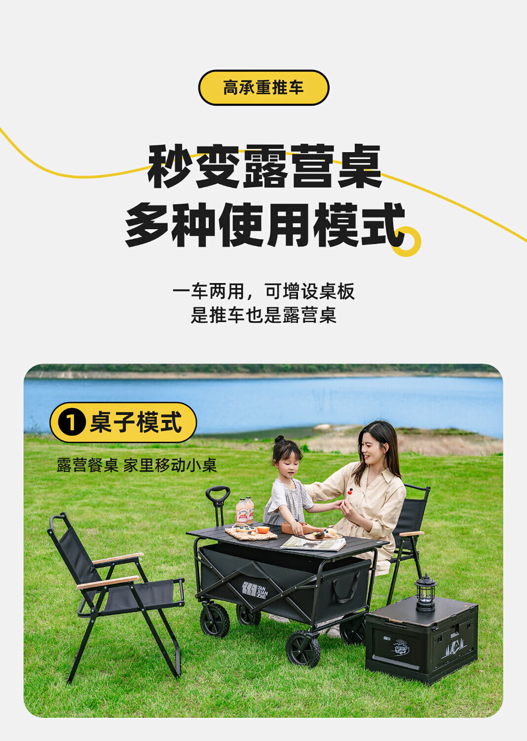 探险者露营车折叠推车户外手推快递车野营儿童可躺小拖车带桌板家用推车 【升级款160L】曜石黑+折叠桌板