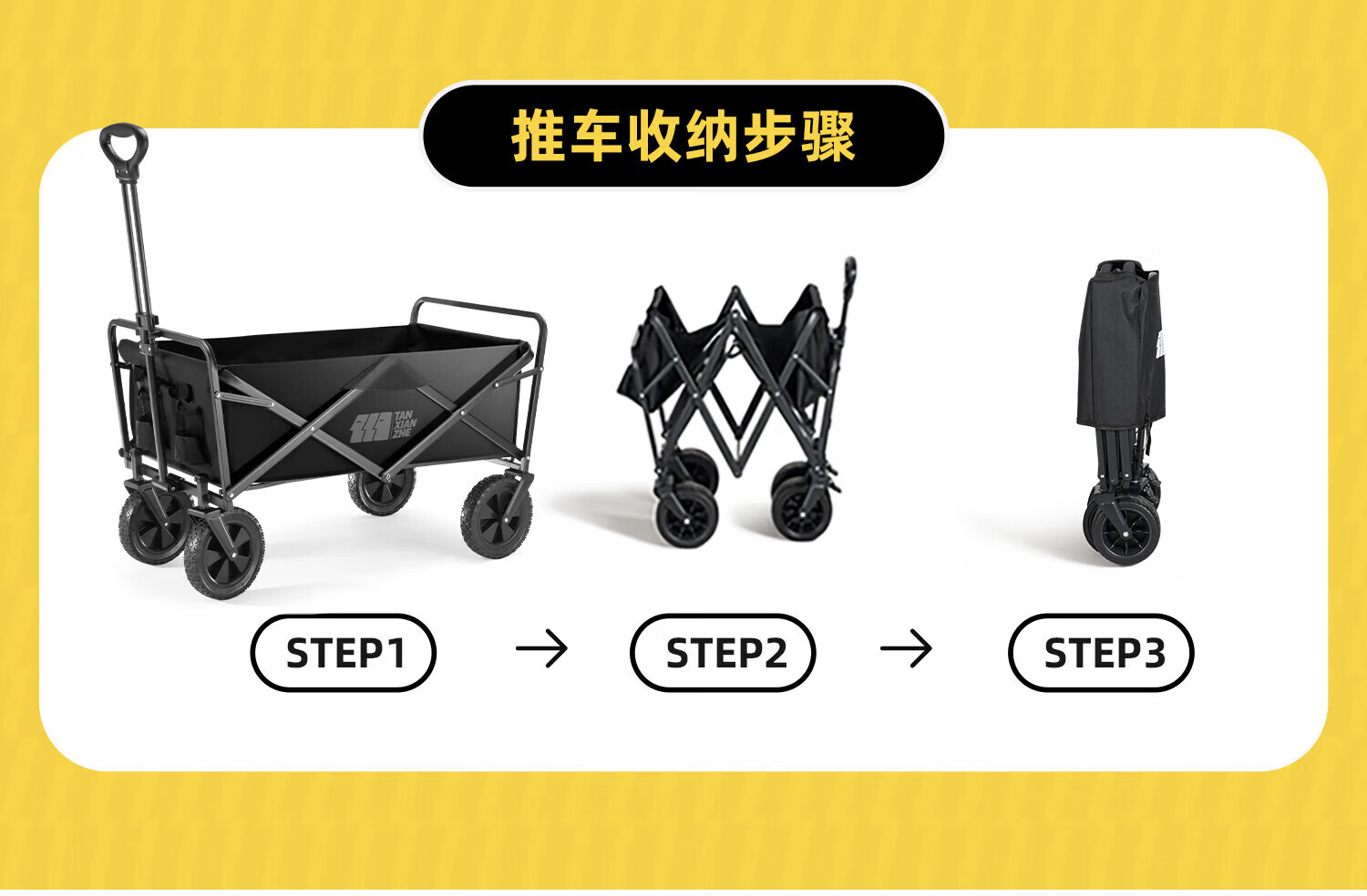 伯希和(Pelliot)HIKER露营车户外折叠手拉小推车便携野餐摆摊拖车16306003曜石黑