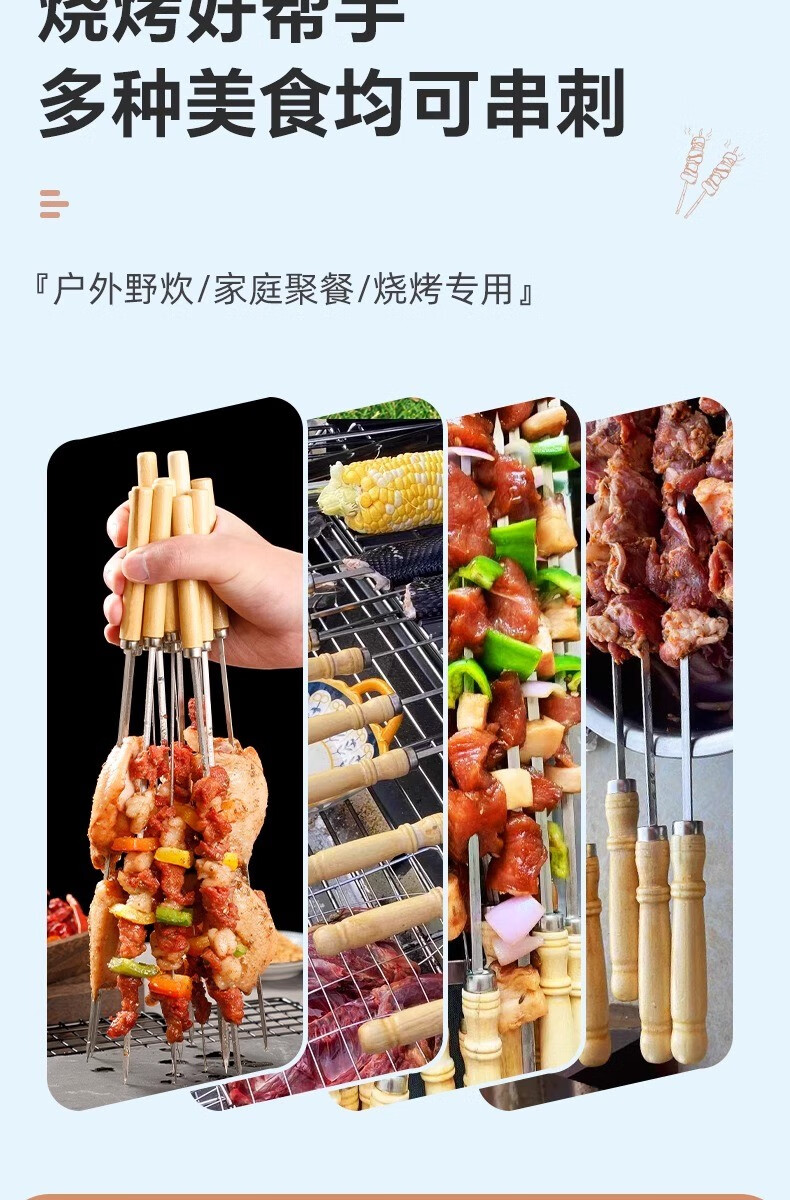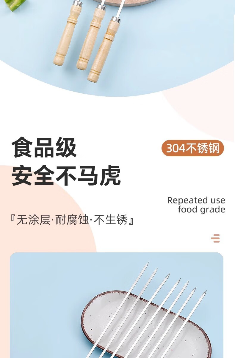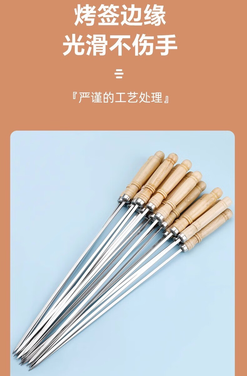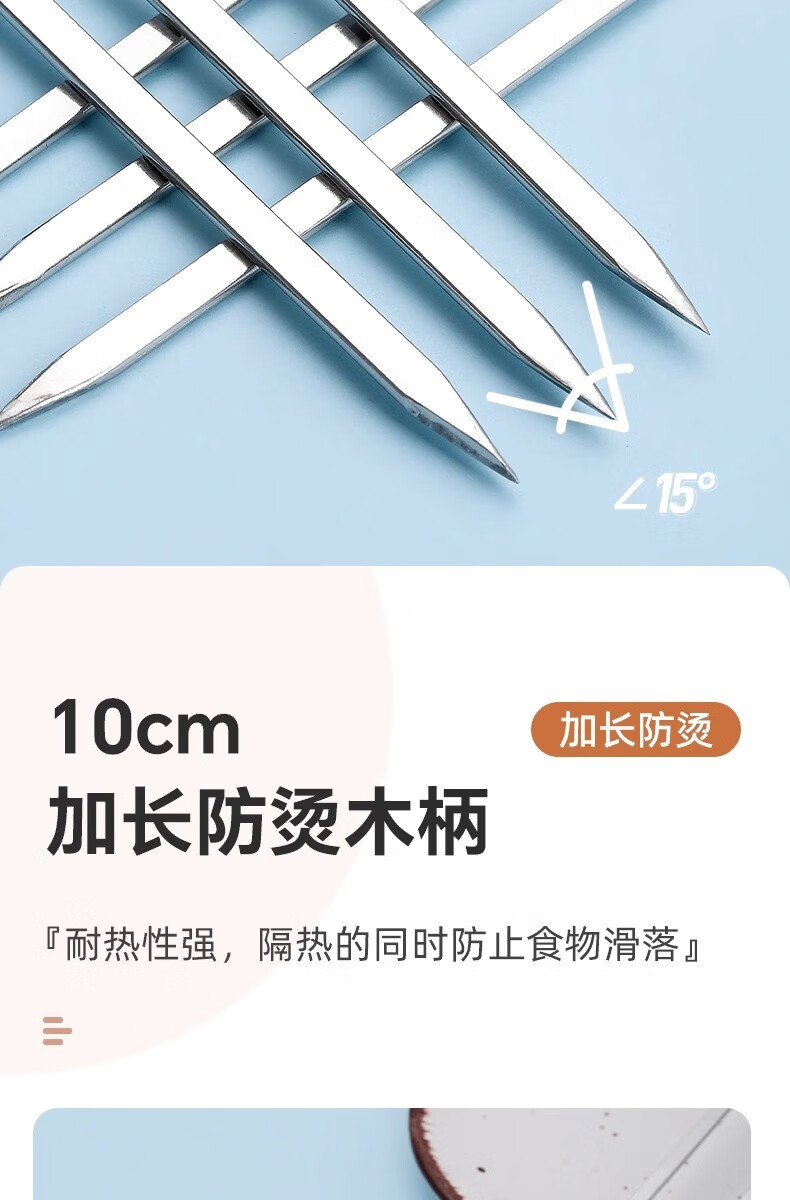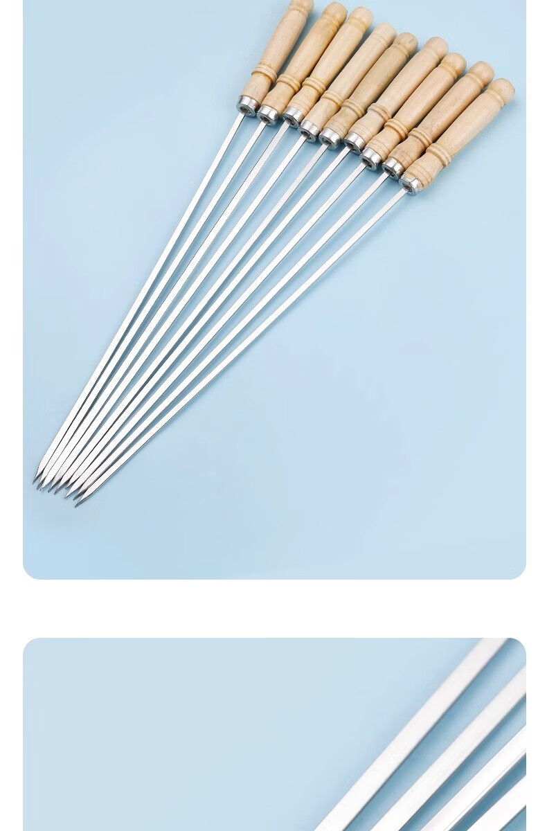 塔夫曼木柄烧烤签子304不锈钢烧烤串针烤肉配件工具羊肉串扁签字烧烤针 长39cm*4.7mm*1.8mm 25支