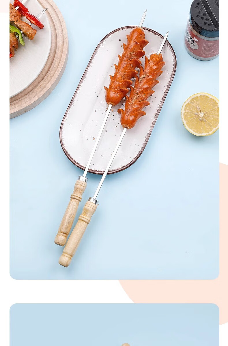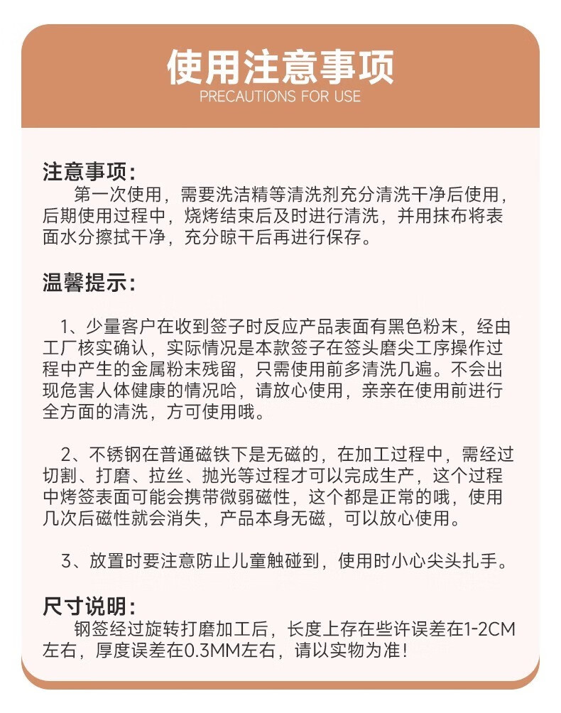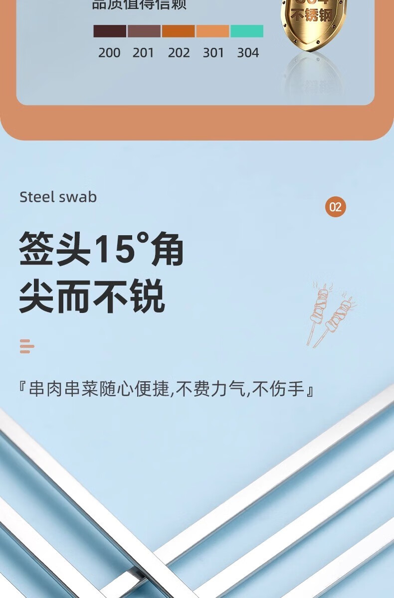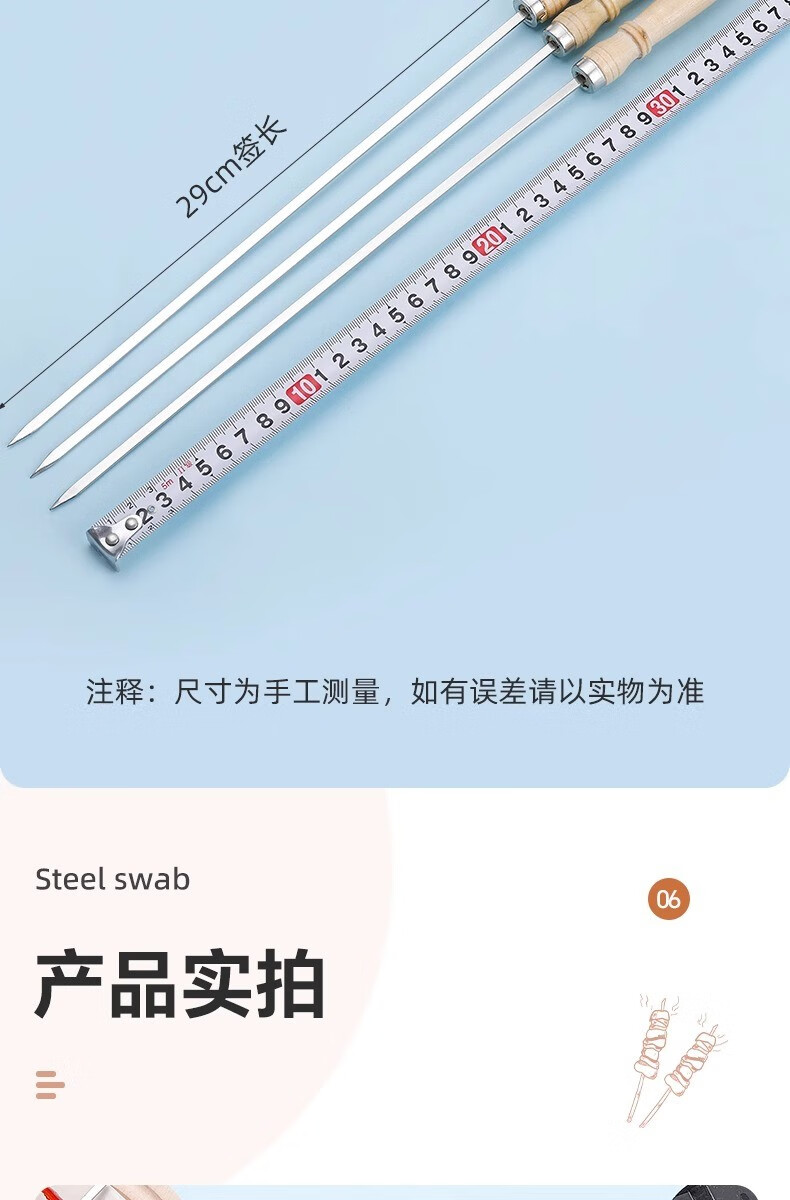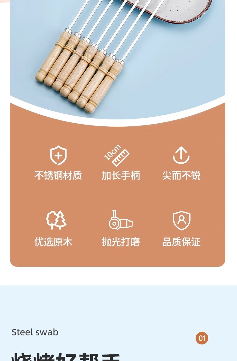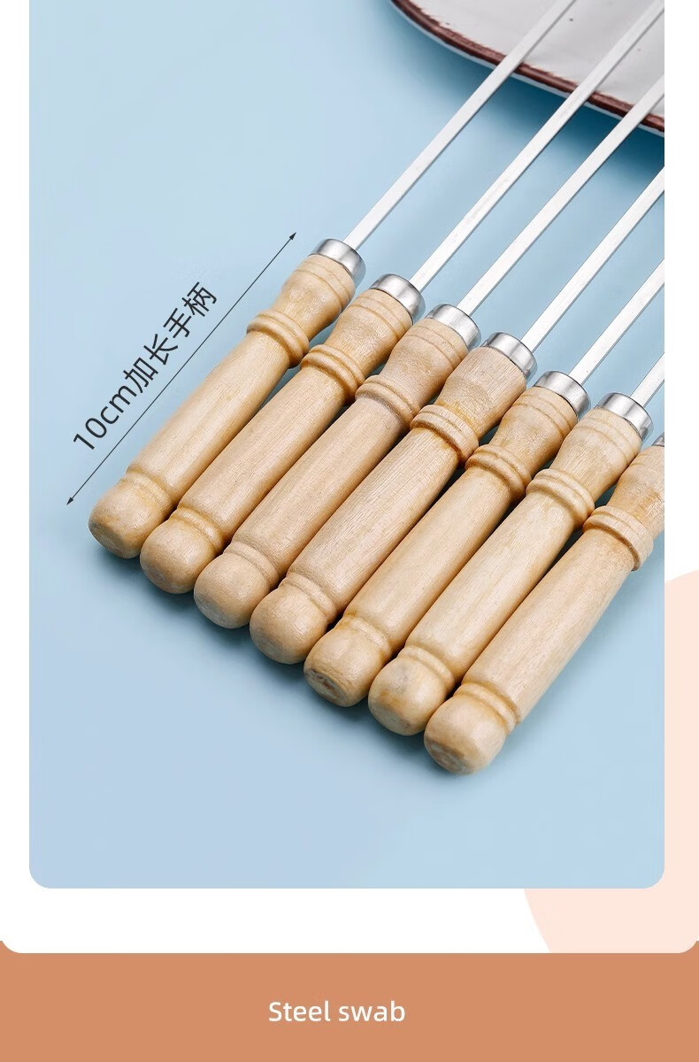 塔夫曼木柄烧烤签子304不锈钢烧烤串针烤肉配件工具羊肉串扁签字烧烤针 长39cm*4.7mm*1.8mm 25支