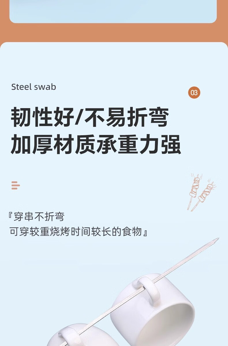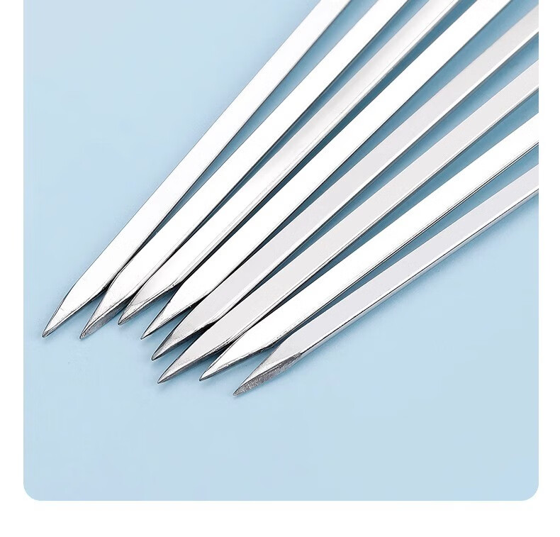 KIQUNE不锈钢烧烤签扁签户外羊肉串烤肉签子钢签铁签圆签全套工具烧烤针 宽3.2厚0.8长35cm扁签【100支】