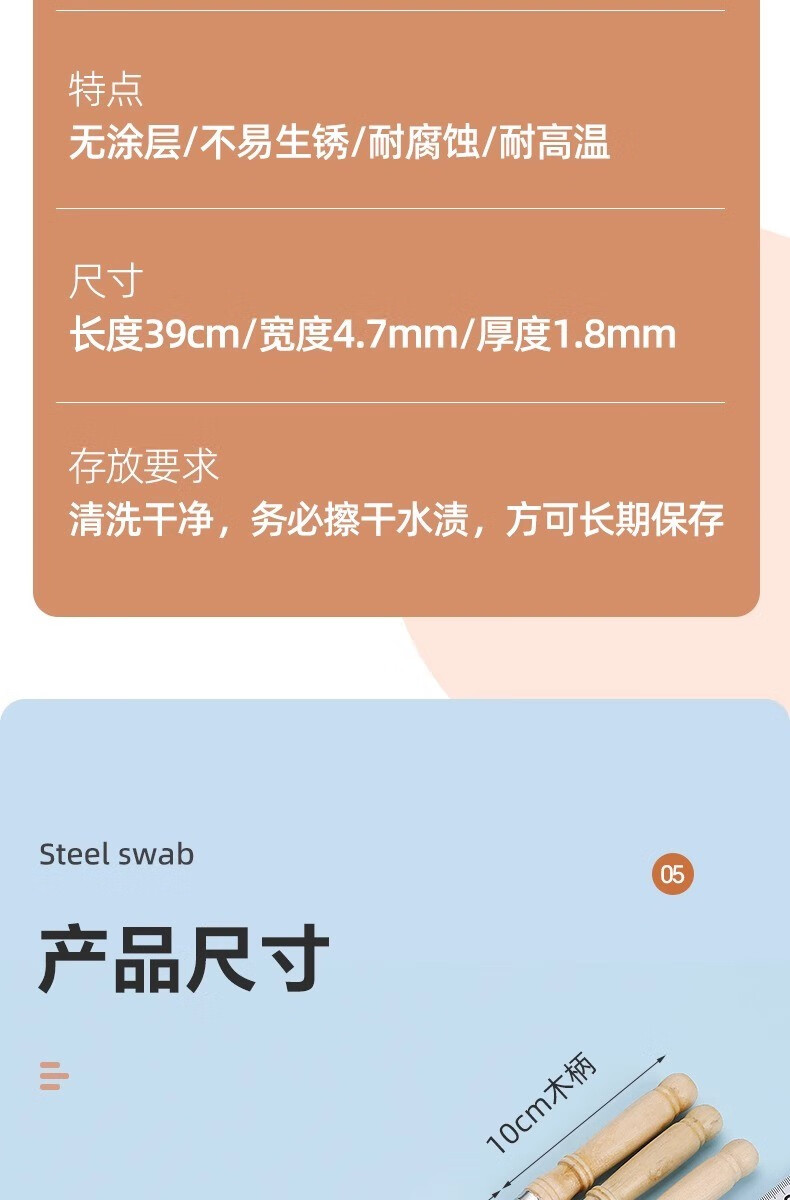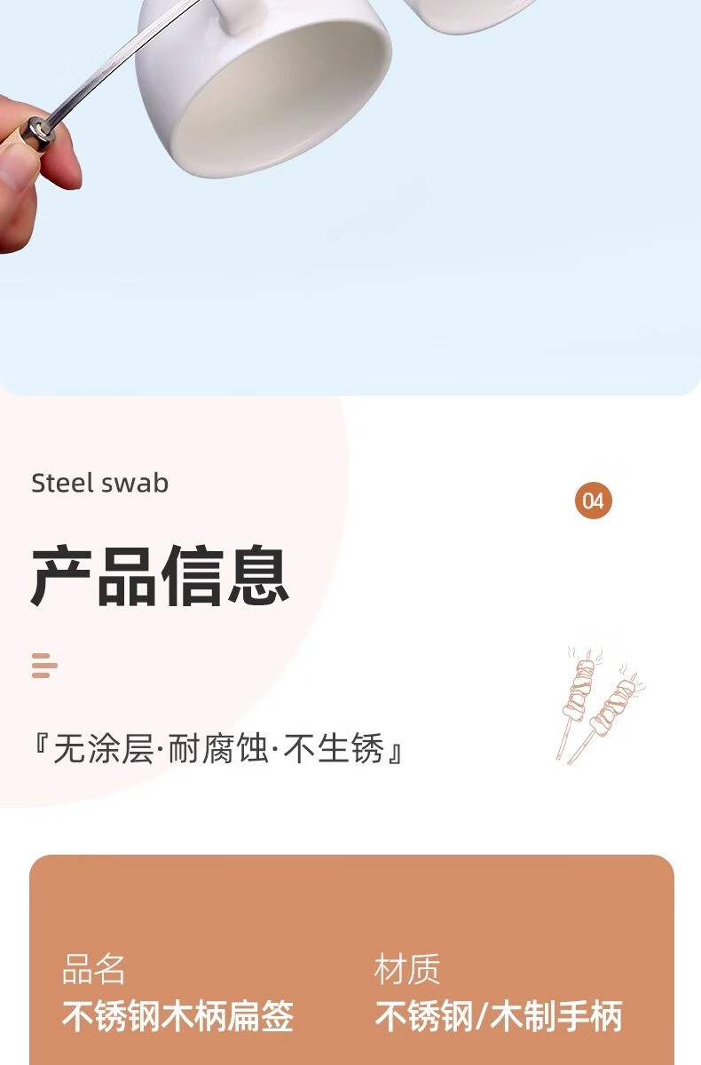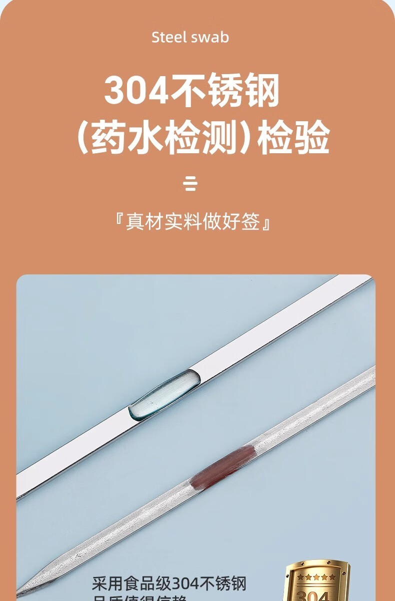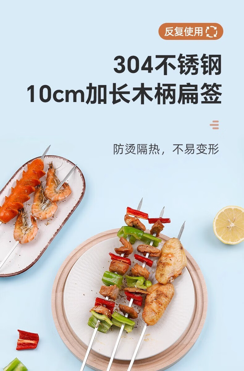塔夫曼烧烤签子304不锈钢木柄串串扁签羊肉串烤肉烤串铁针钎子商用工具 长35cm宽4.0mm厚1.0mm20支