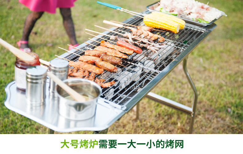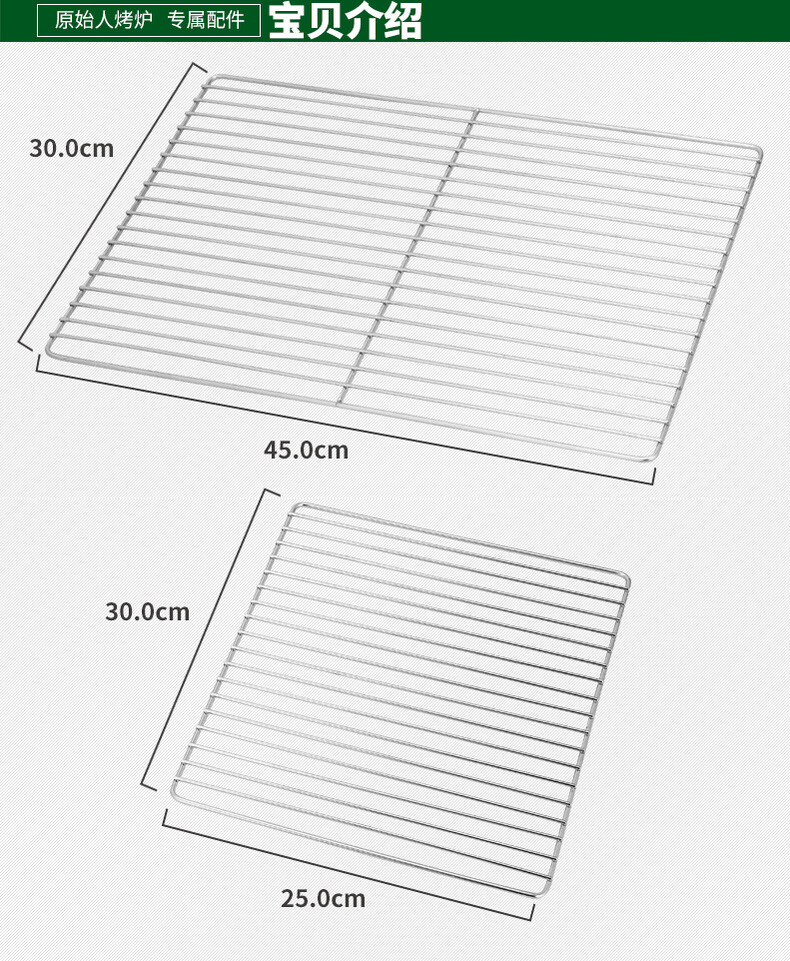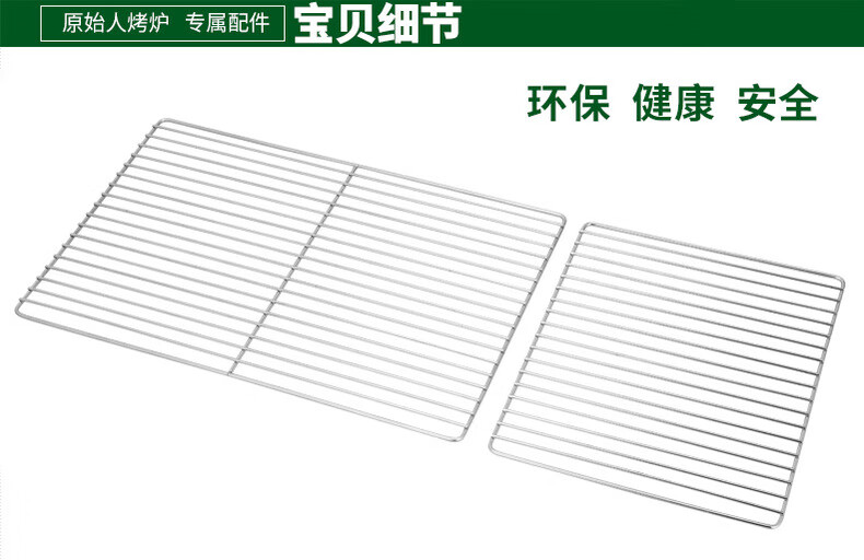 原始人 烧烤网不锈钢长方形方格烤网网架工具烤架配件 不锈钢烤网一套(一大一小)
