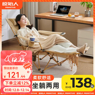 原始人躺椅户外折叠椅休闲躺椅露营椅便携露营椅子沙滩椅办公室午休钓鱼 卡其厚棉款【可拆卸脚托/300克夹棉/舒适透气】