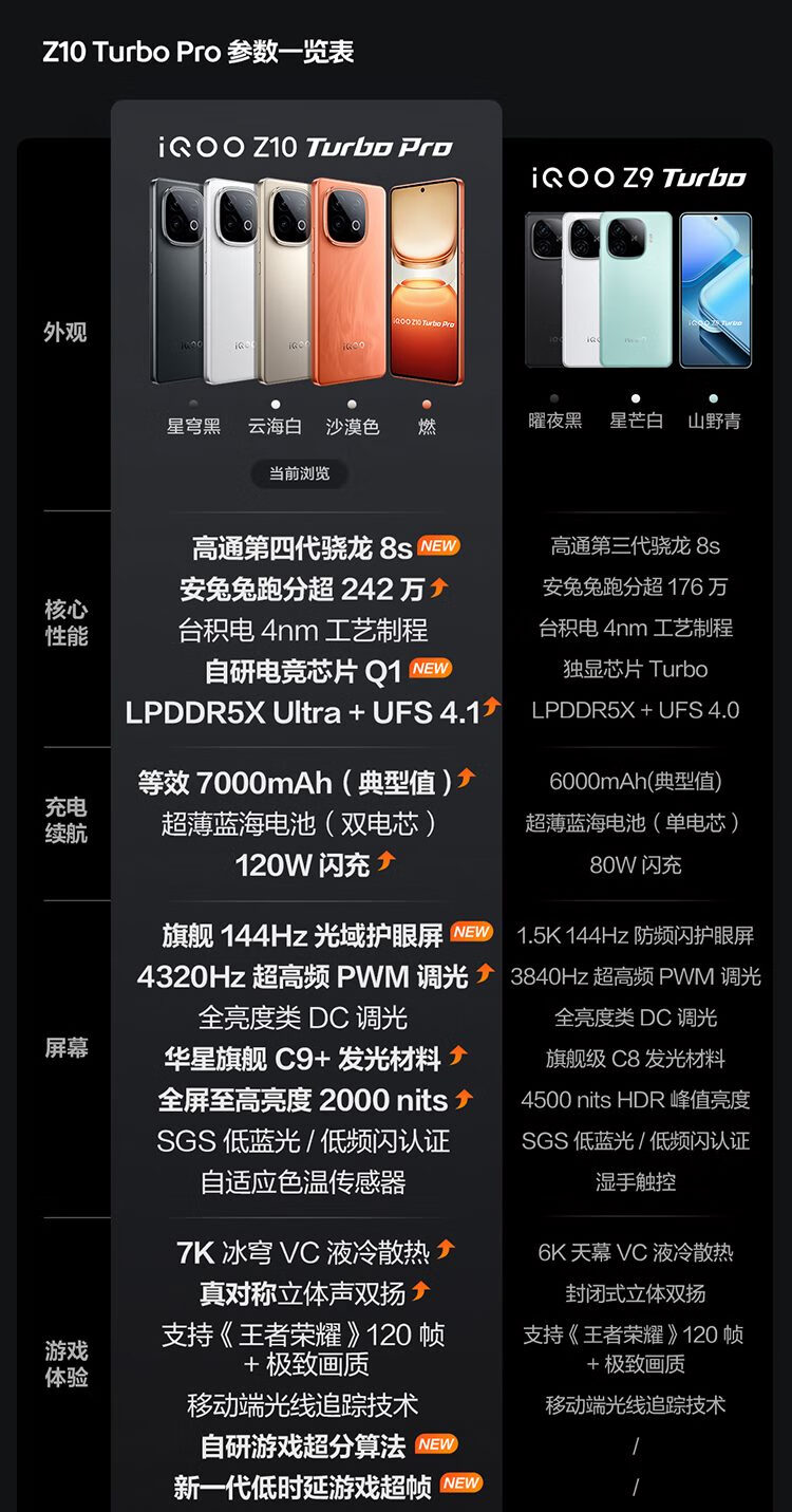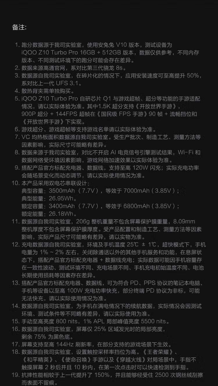 iQOOZ10 Turbo Pro 5G手机 12GB+256GB大电池 配备AMOLED屏幕的高通游戏手机 长续航7000mAh 星穹黑 12GB+256GB