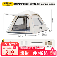 JEEP天幕帐篷户外露营帐篷全自动速开便捷天幕二合一防晒家庭野营装备 加大号米白