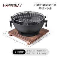 小幸福烧烤炉烤肉家用煮茶圆形烤火木炭户外多功能烤炉 26cm烧烤炉+烤网+木托盘