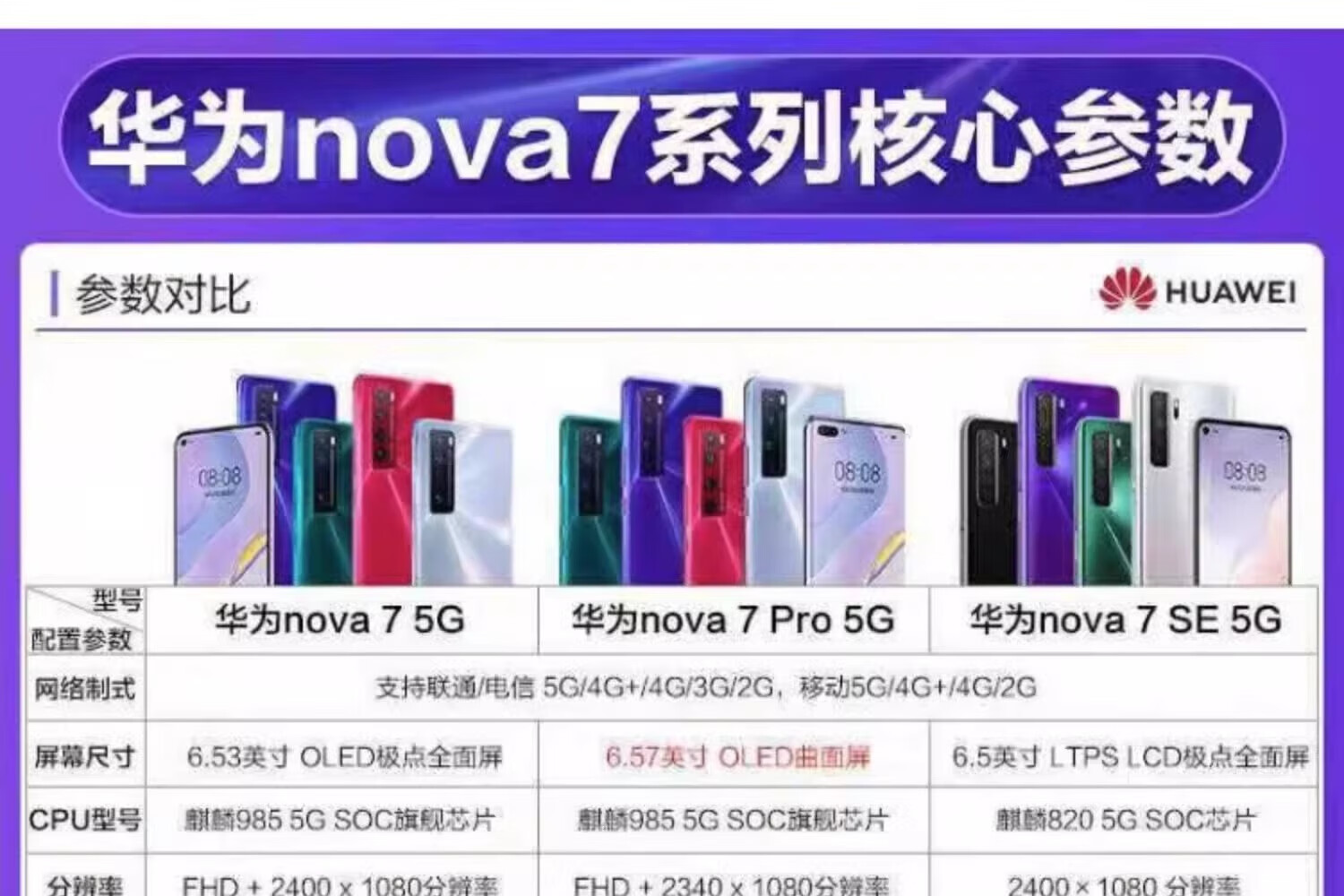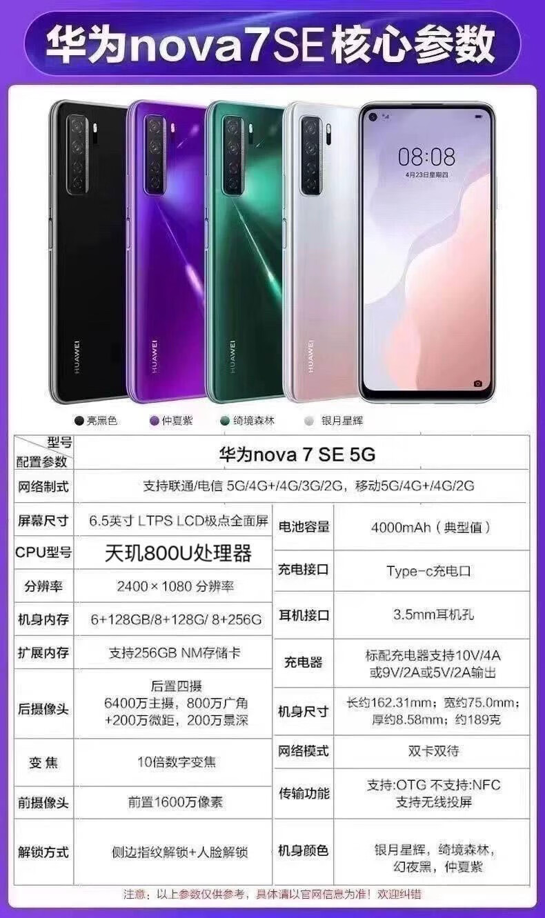 华为Huawei/华为 nova 7 SE 5G 手机麒麟985芯片全网通nova7鸿蒙系统 仲夏紫 8GB+128GB【5G全网通】 nova 7【5G全网通】屏幕指纹