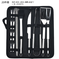 Nobana新品户外不锈钢烤具套装烧烤组合工具户外野餐BBQ烧烤套装 布袋小管柄20件套/刀款