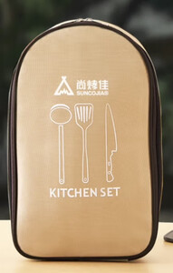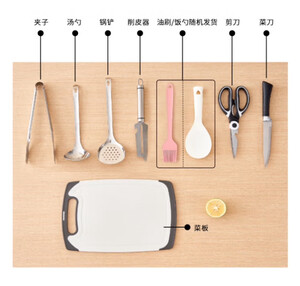 这套用具不太满意的哦!总体来说品质不好的,剪刀是搓的,不能正常使用,菜刀太小使用效果不好,其它几样厨具还算凑合吧!包装还是可以的。