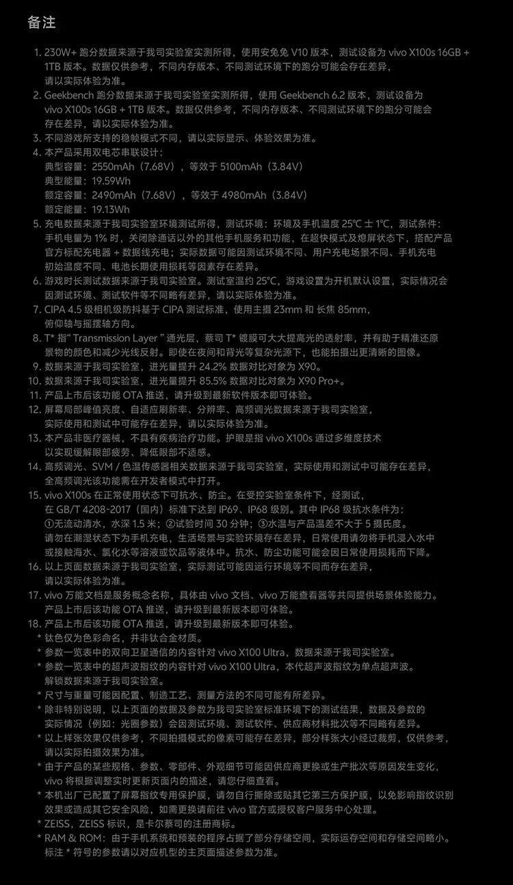 vivox100s 天玑9300+ 5100mAh电池 100W闪充 蔡司三摄 6.78英寸直屏 IP68/69K防水 旗舰手机 深空灰 12GB+256GB 单机+原装快充+店保一年
