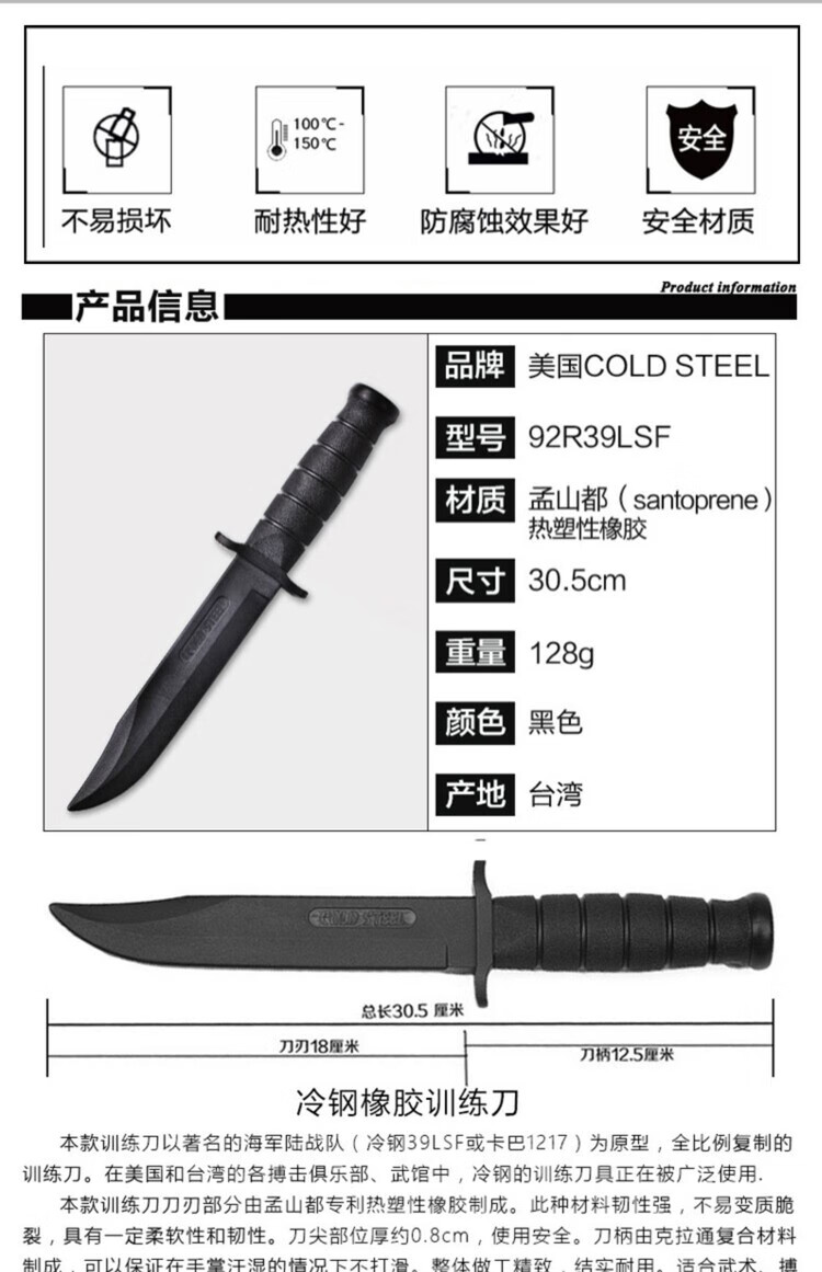COLD STEEL美国冷钢cold steel橡胶未开刃护手武术格斗装备搏击对战训练刀 92R80NTP