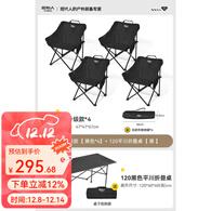 原始人月亮椅户外折叠椅露营椅子桌椅沙滩椅便携躺椅野餐钓鱼椅凳 经典款黑色*4+120黑色平川桌