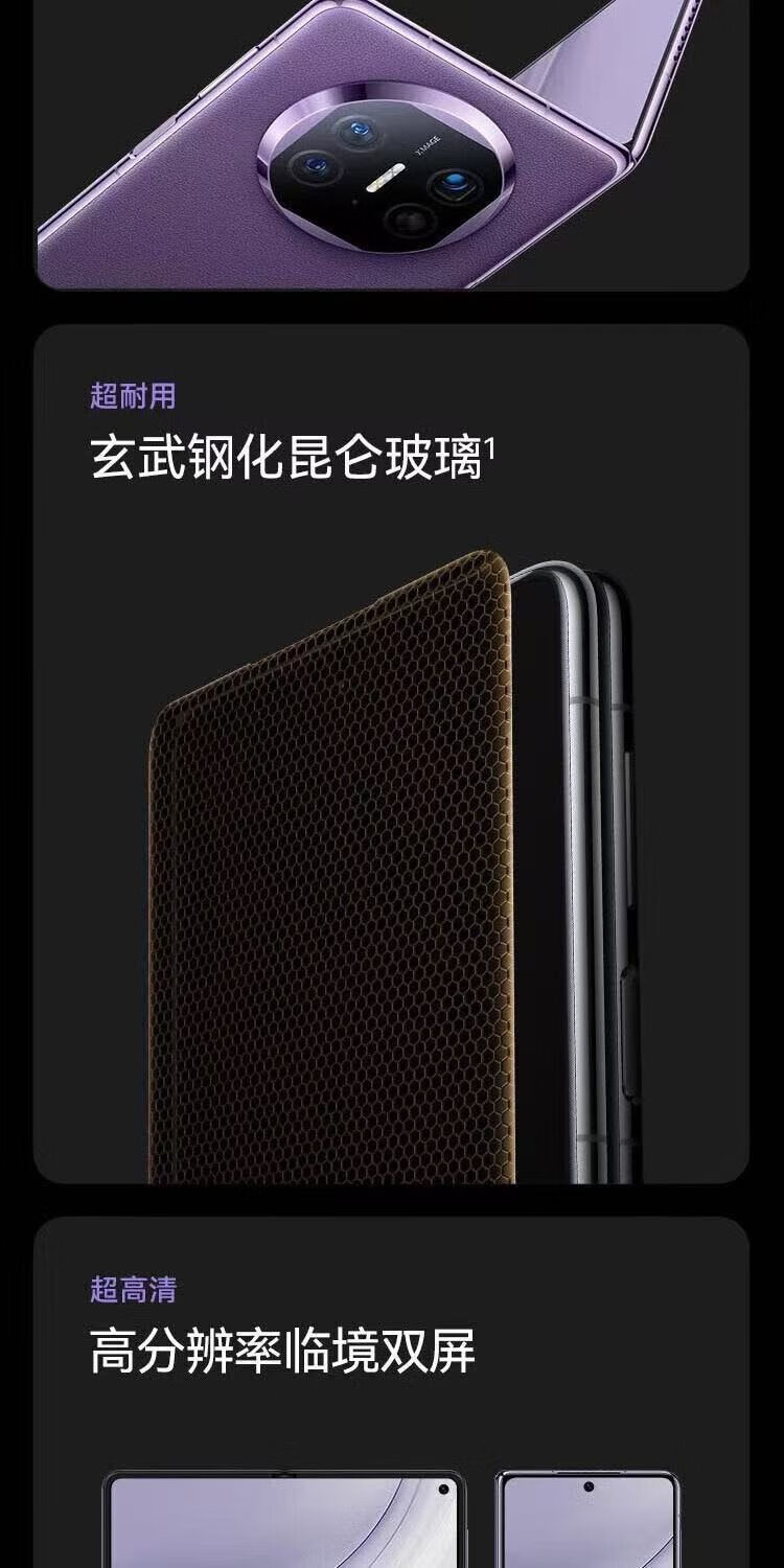 华为Mate X3 华为超轻薄四曲折叠屏昆仑玻璃双向北斗卫星 羽砂黑 12GB+256GB仅拆