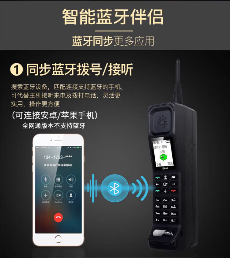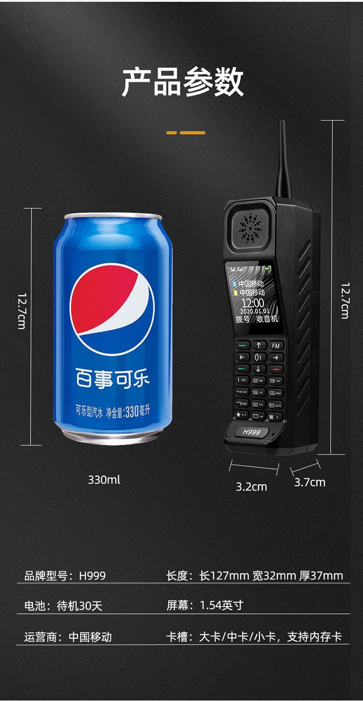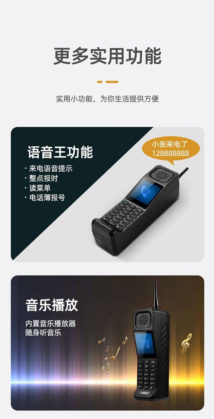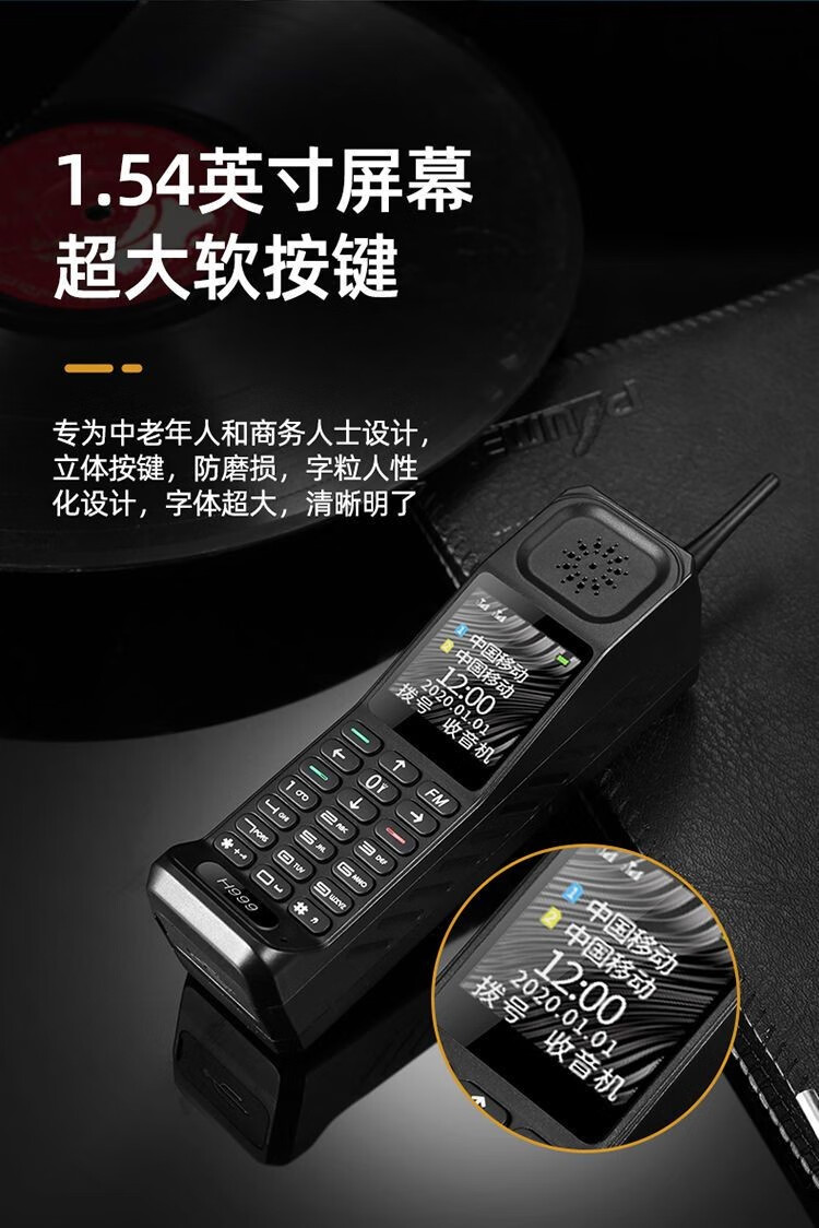 皓轩【4G全网通】大哥大手机复古怀旧创意80年代经典移动联通电信备用座机只能接打电话老年机超长待机 黑色 4G全网通版本