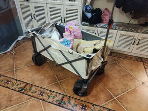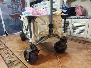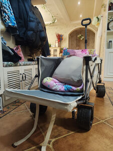 这款户外折叠推车太实用了,折叠设计不占空间,展开后容量超惊喜,装露营装备、快递包裹都轻松,侧边网袋还能放小朋友的水杯。 最戳我的是它的“多用属性”:平时是拉货小能手,加个坐垫秒变小宝宝娃的“移动小床”,轮胎是宽幅越野款,小区石板路、公园草地都能平稳推,拉杆高度也顺手,拉重物也不外八。 目前用了几次,布料结实、支架稳当,收纳后塞阳台角落完全不碍事,不管是露营党还是家庭日常都适配,性价比真的高!