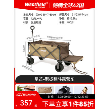 westfieldoutdoor户外露营车我飞露营装备聚拢折叠带翻斗营地车摆摊遛娃拉货拖车 (卡其)橡胶+高轮丨带翻斗 280L