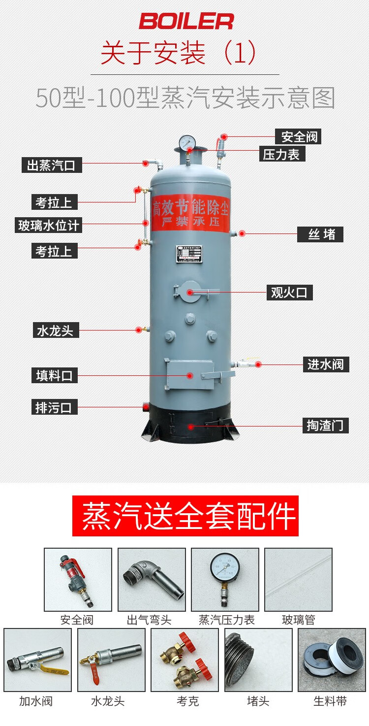 米囹锅炉家用地暖燃煤水暖养殖烧柴新型节能环保采暖蒸汽常压热水酿酒 特质加厚大50型容水260公斤