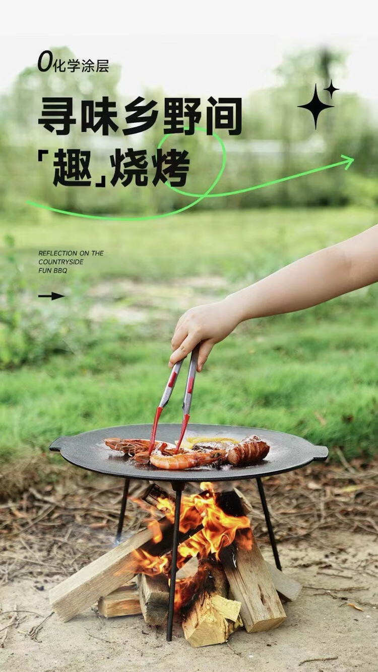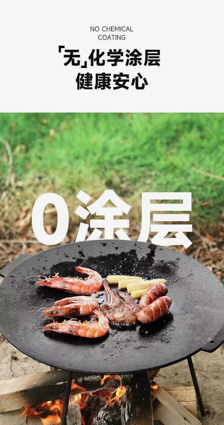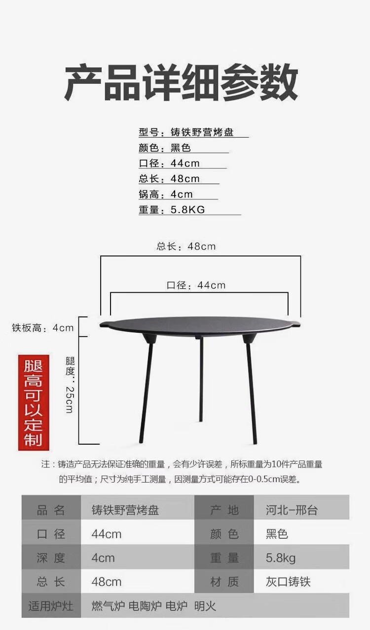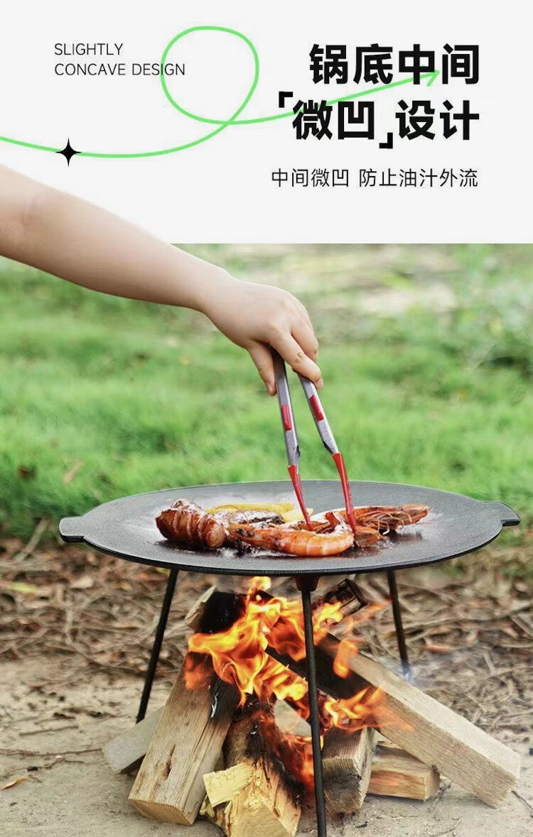 44.5大尺寸户外露营烤盘韩式卡式炉便携烧烤煎锅铁板铸铁家用烤肉 大烤盘【带三支腿】