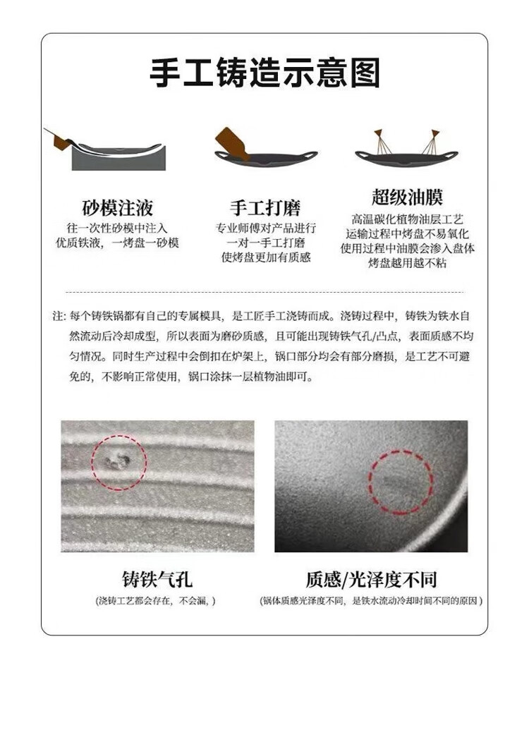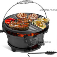 饷亨铸铁烧烤炉庭院烤炉生铸铁烧烤炉 出口美国食品级户外野炊庭院木 经典尺寸:内径24CM(6kg)2-3人