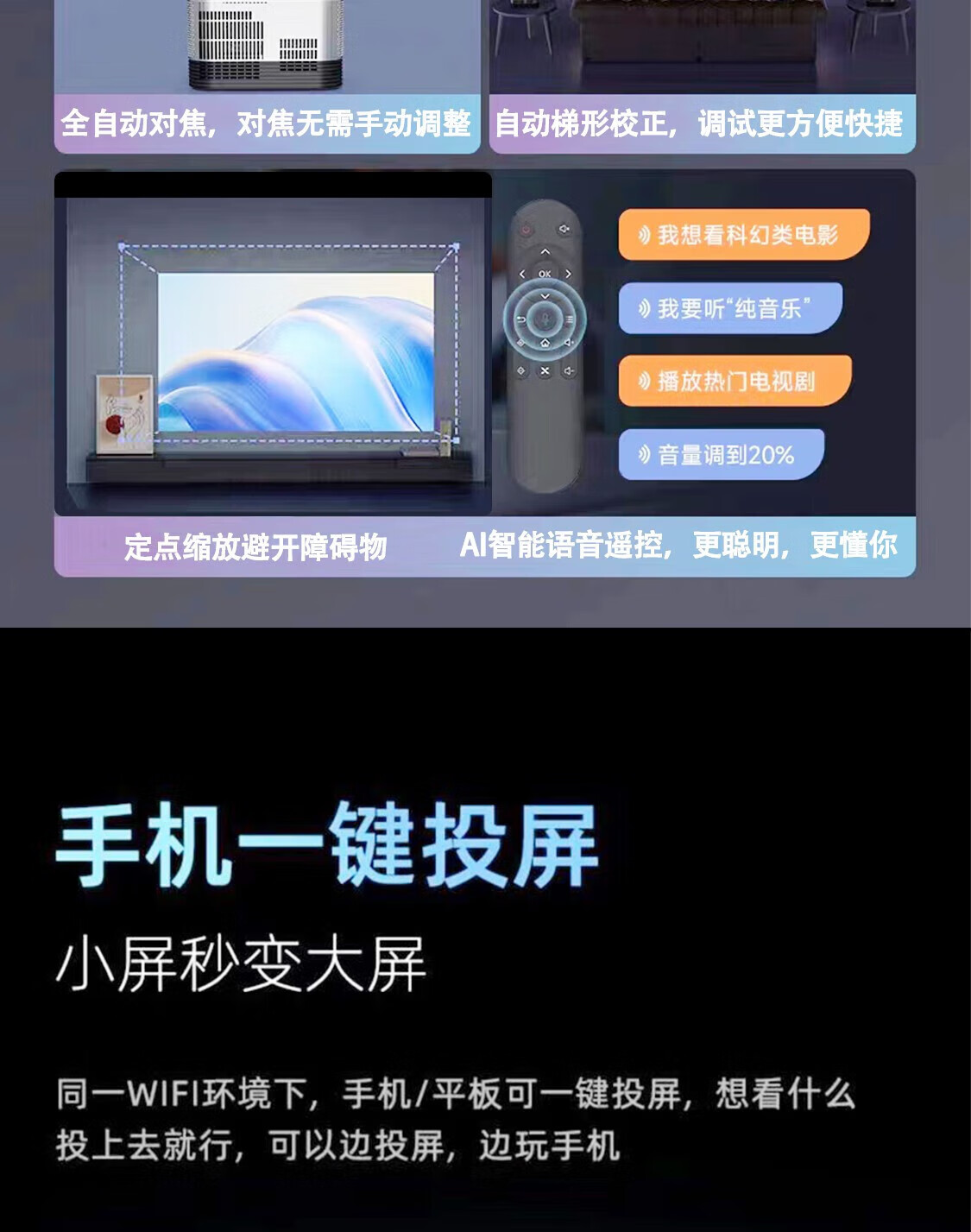 倍安士投影仪家用家庭影院4k超高清家用办公投影仪排行前十名投墙卧室客厅手机无线投屏电视一体机 4K解码全自动对焦】手机投屏丨AI语音丨可装APP