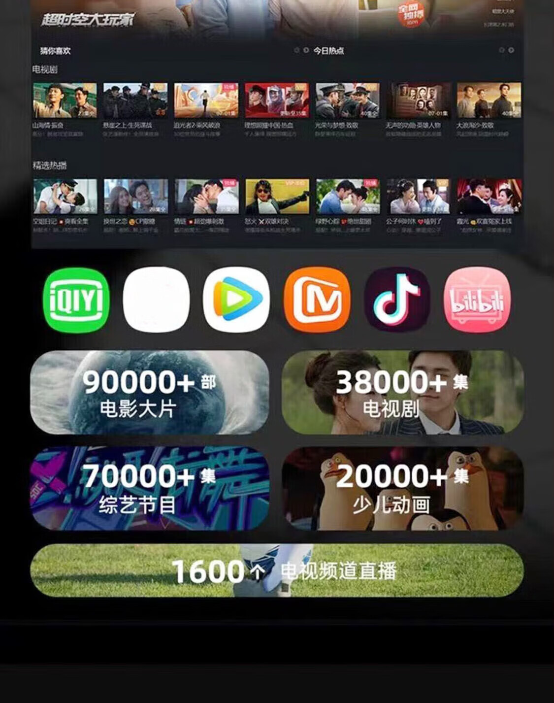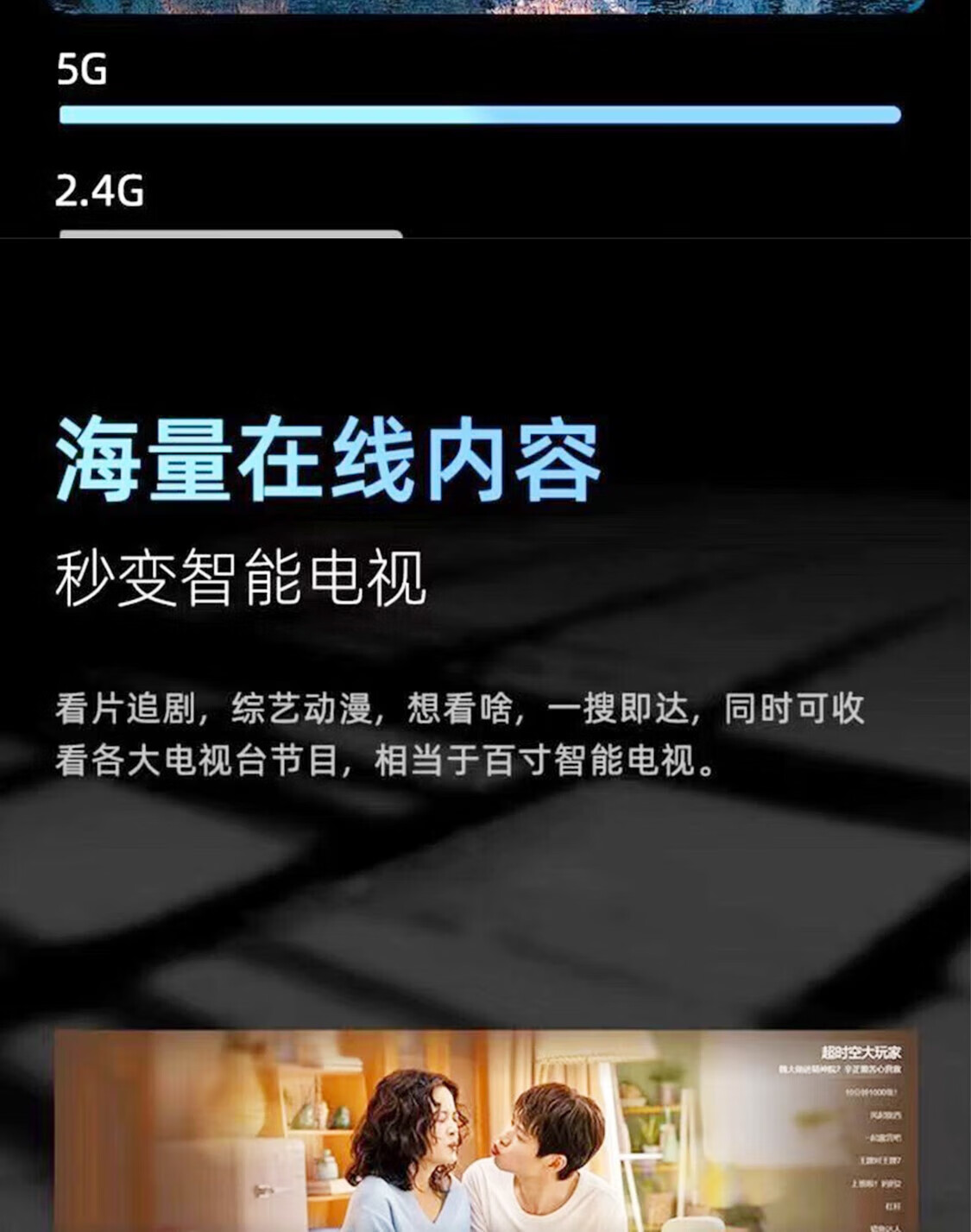 晚上用投影仪看电视真的太赞了,画面非常大,投影出来亮度也很高,机器自带了很多看电视的软件,自己也可以去下载,只需要链接无线网就能使用了,这个价格能买到这么棒的机器真的是良心