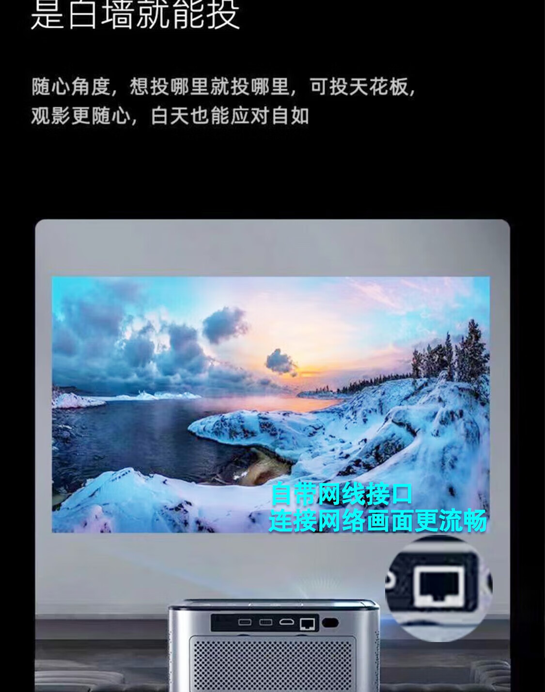 我是直接投的房间墙面,画质效果很是不错,声音效果也行,点赞
