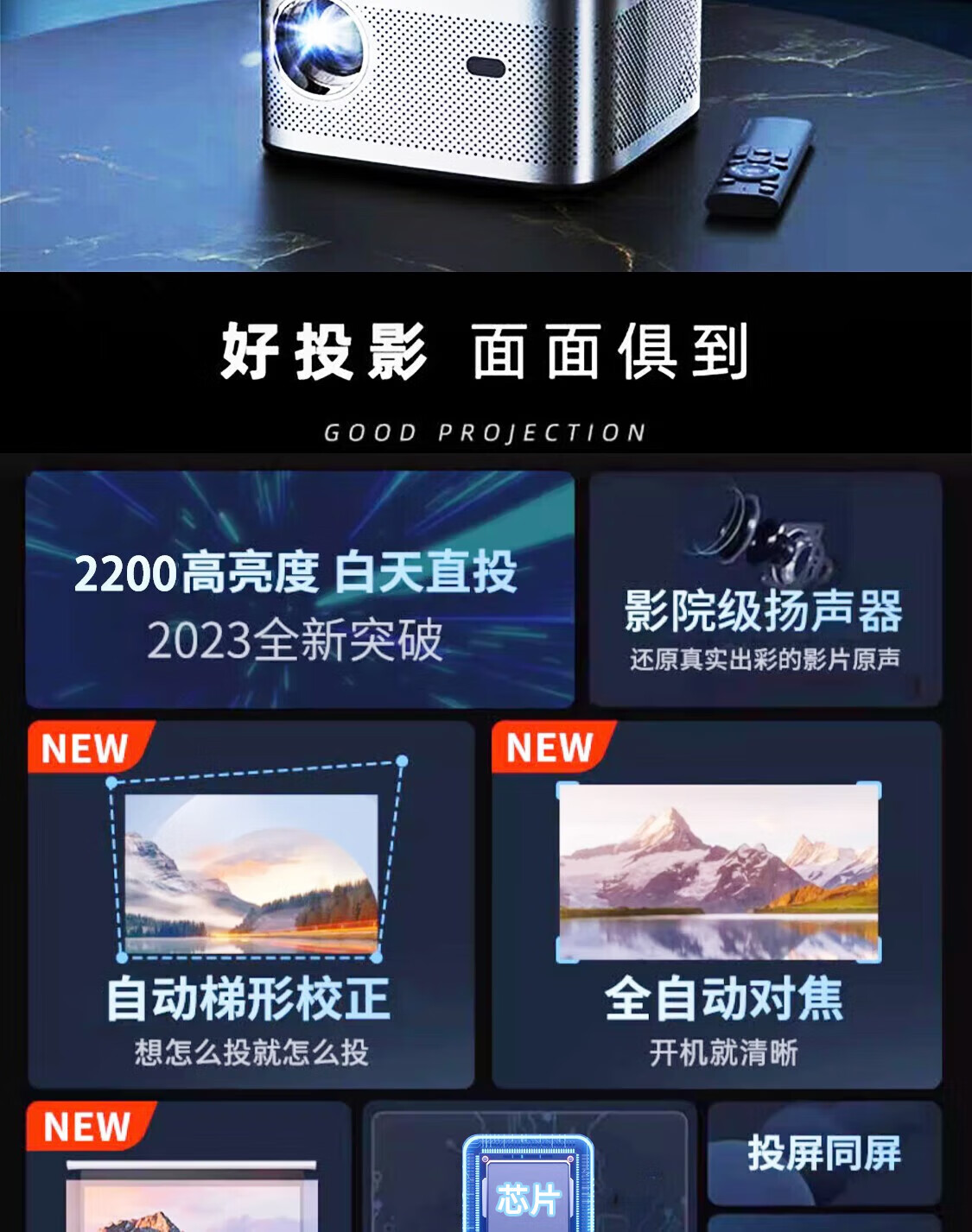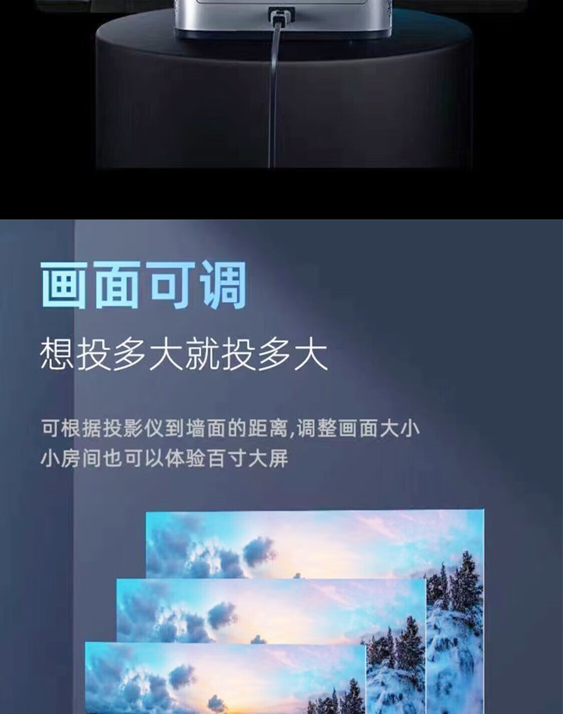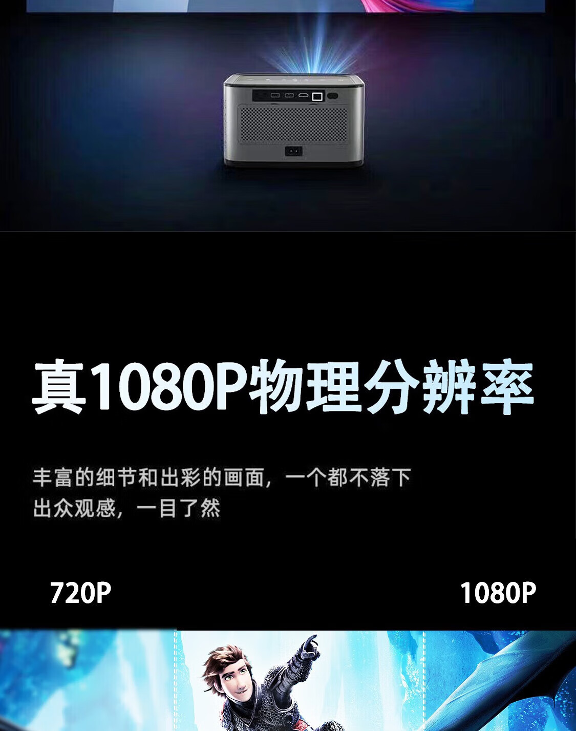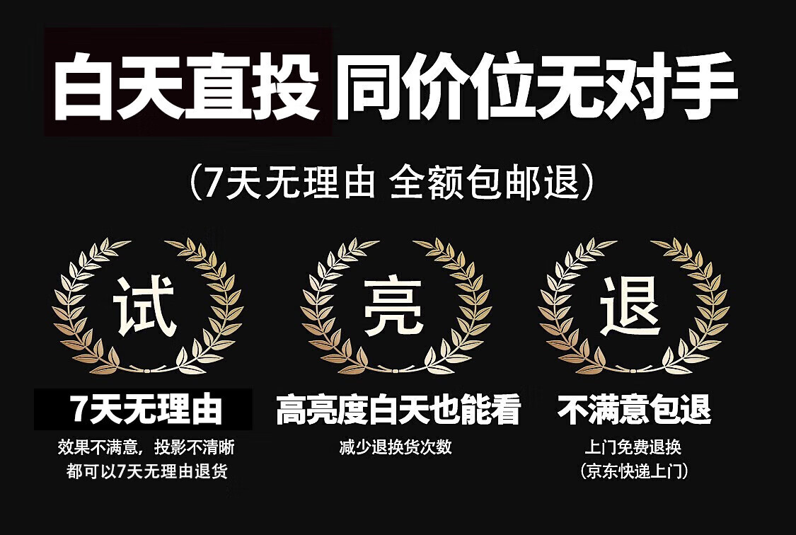 这个机器性价比挺高的,画面色彩可以的,超清的画质看的眼睛不累,亮度也高,手机投影上去也不赖,看视频无延迟无卡顿,真的是无死角打动我,机器也是比较小,款式可以,晚上在家看电影也能很有氛围!