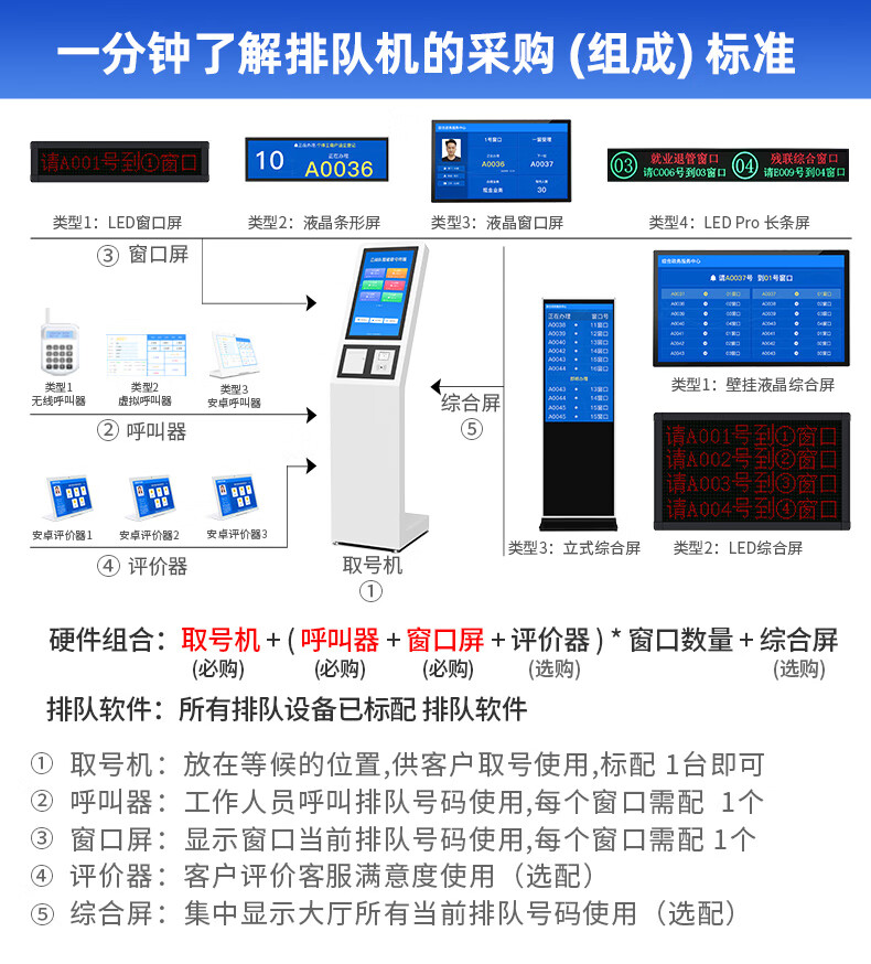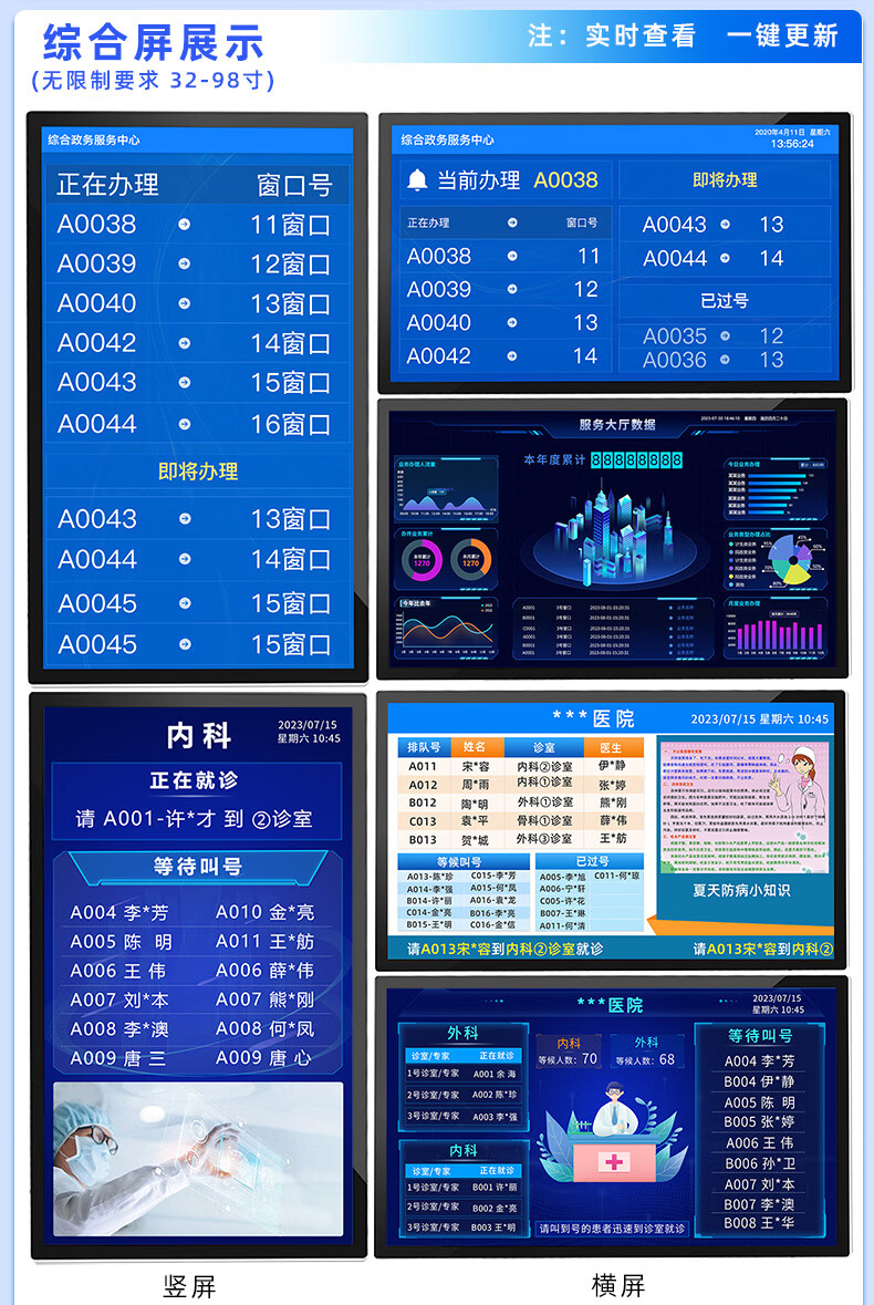无线排队机叫号机车管所营业厅服务厅触摸政务大厅医院诊所取号机 49寸液晶窗口综合显示屏