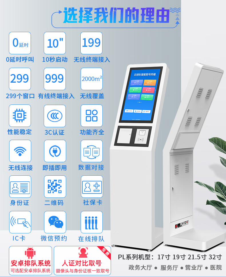 有这台 21.5 寸无线排队机可太方便啦!往服务厅一放,气派又显眼。触摸操作,简单易上手,老人小孩都能玩转。再也不用傻站着干等,拿号后安心坐等叫号,井然有序,大大节省时间,这高科技真帮大忙了!
