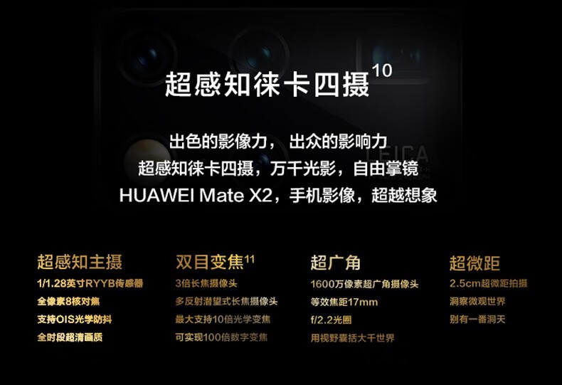 华为Mate X2【全新未拆封+未激活+全国联保】X5 X6选购 折叠屏5G手机 无缝鹰翼折叠 支持鸿蒙Harm 亮黑色【5G标准版】 8GB+512GB【带充评价10红包】
