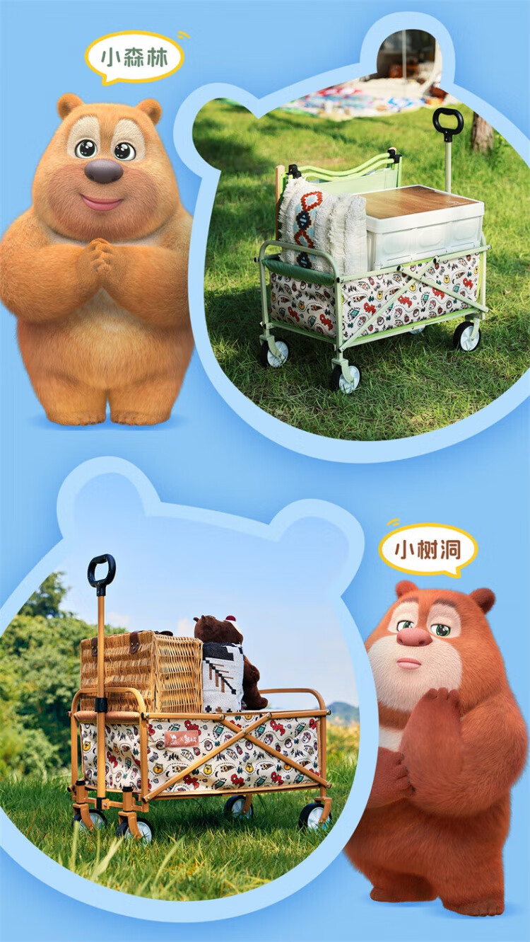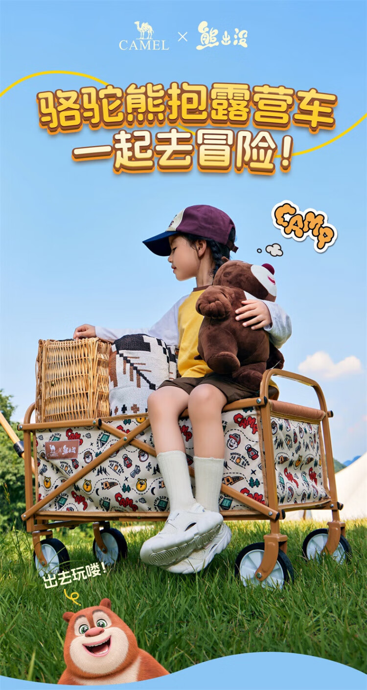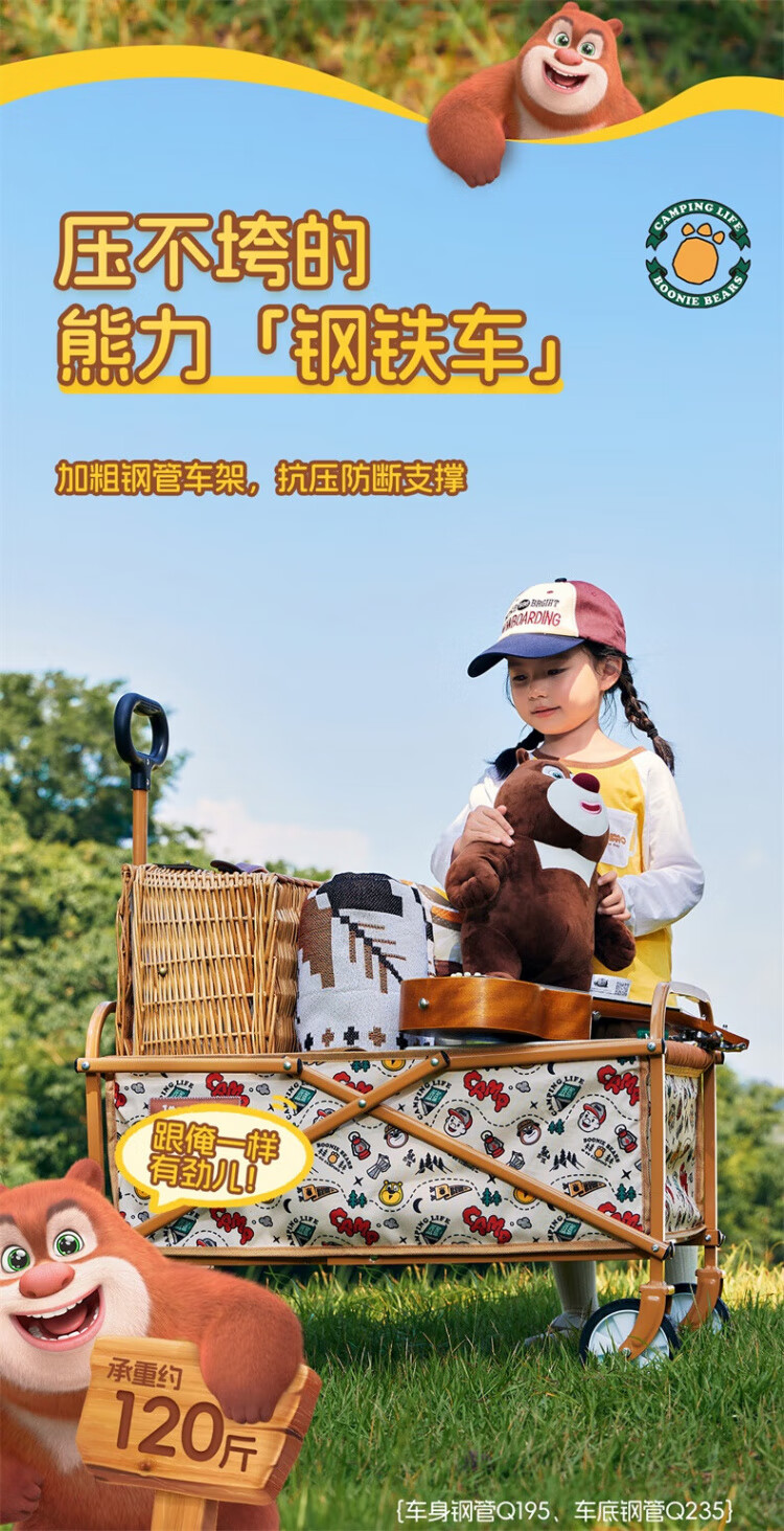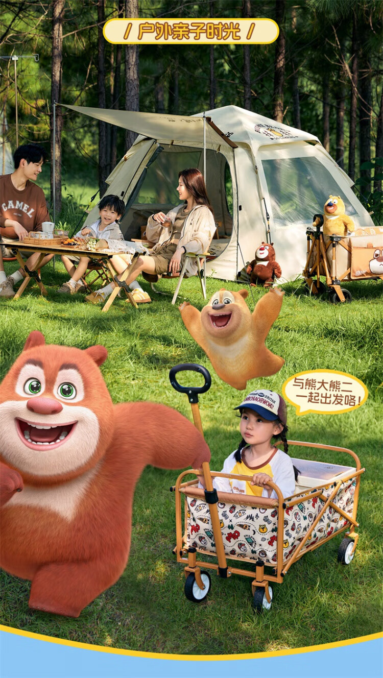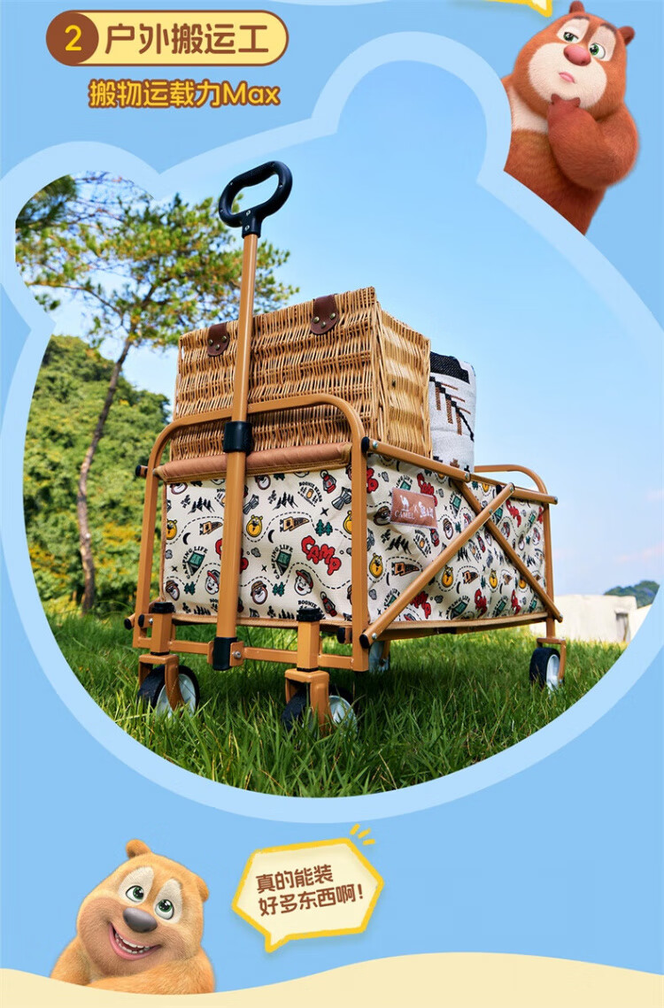 CAMEL【骆驼×熊出没】露营户外折推车叠买菜遛娃手推车野餐遛狗拉车 小森林,176BJ03511, 130L