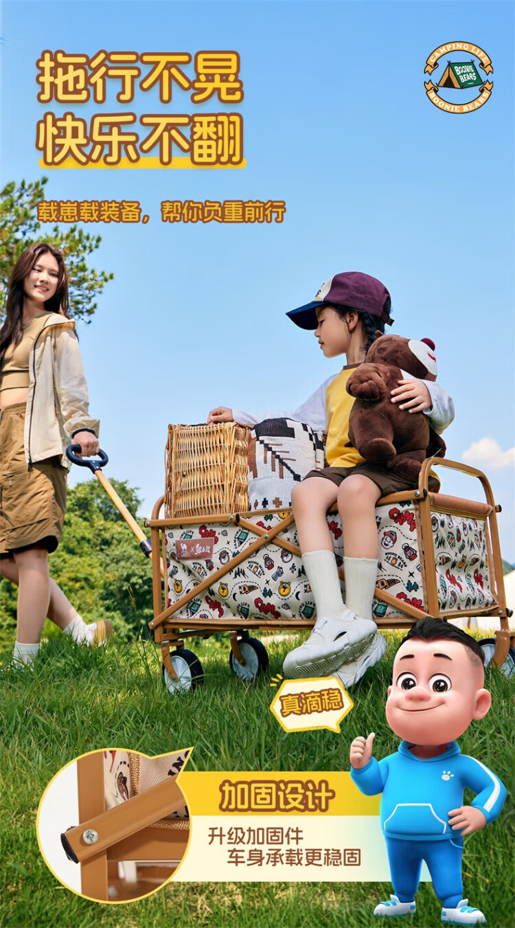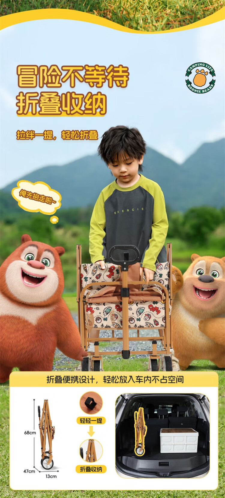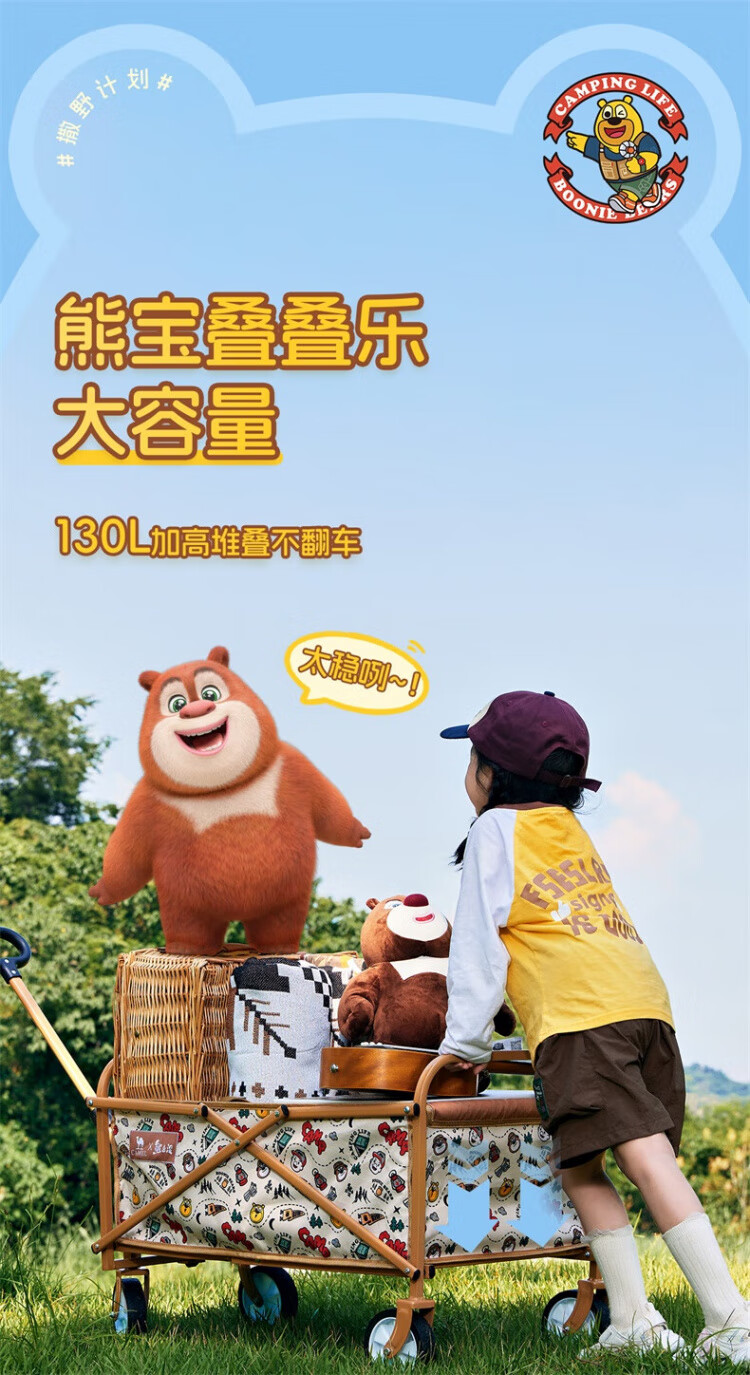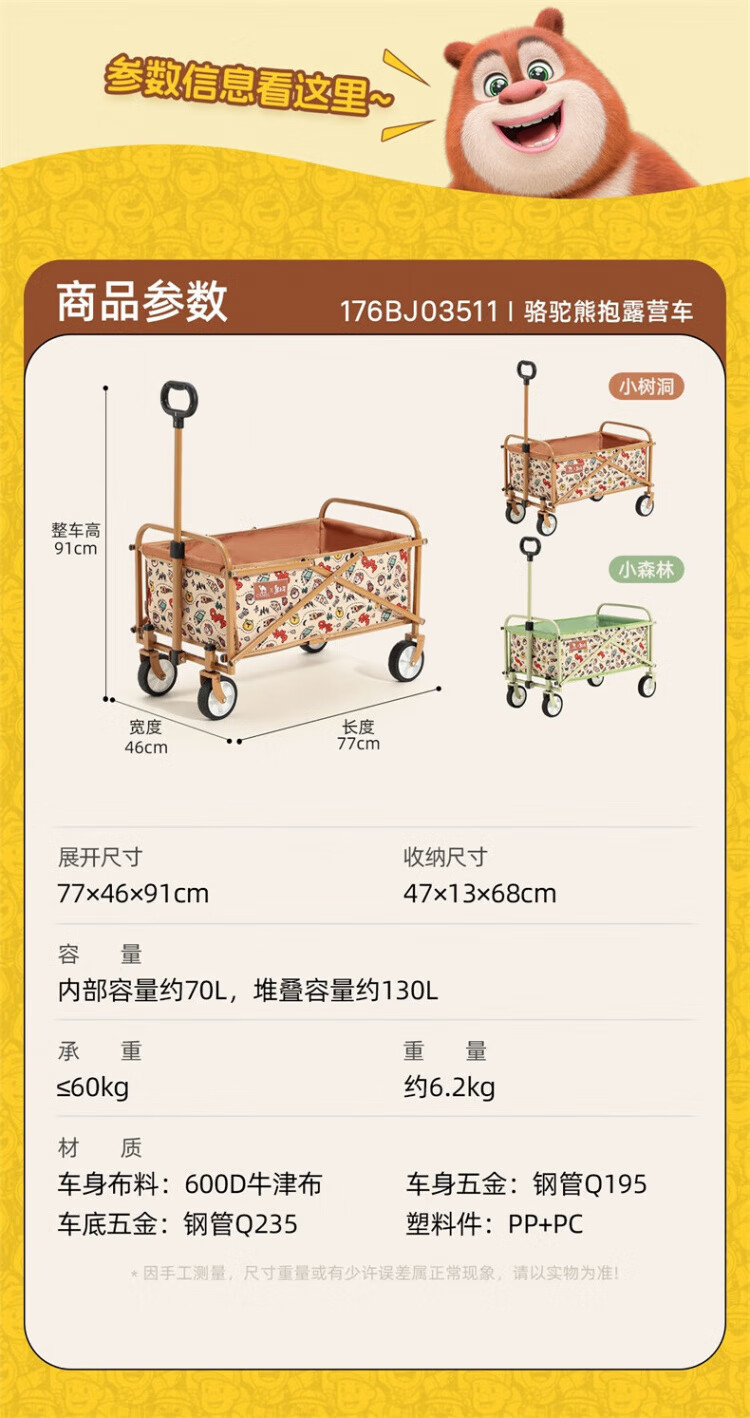 CAMEL【骆驼×熊出没】露营户外折推车叠买菜遛娃手推车野餐遛狗拉车 小森林,176BJ03511, 130L