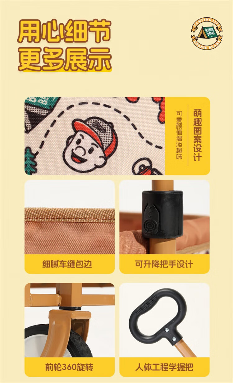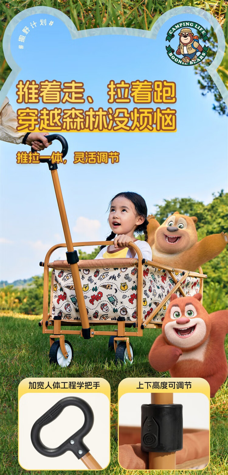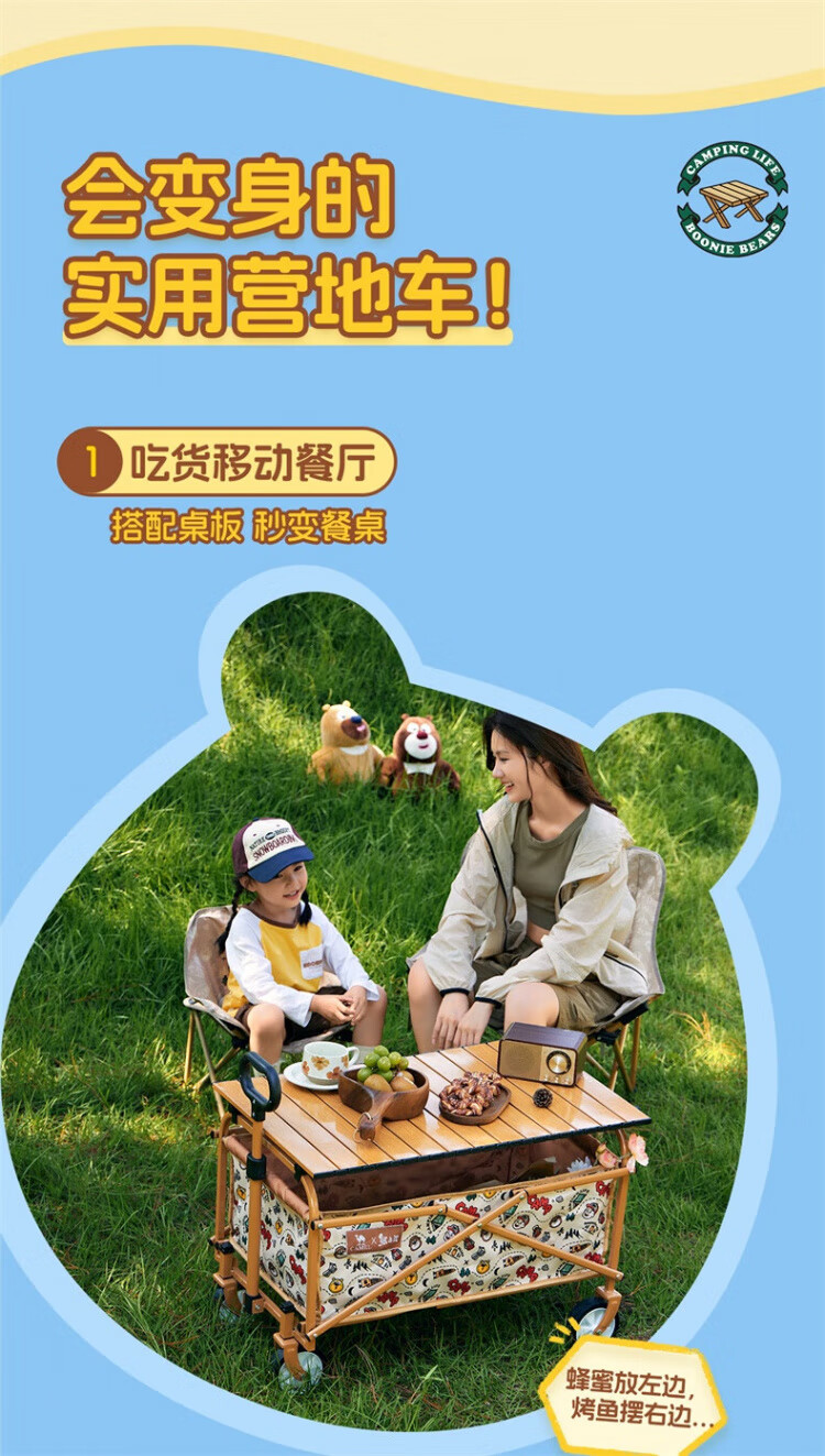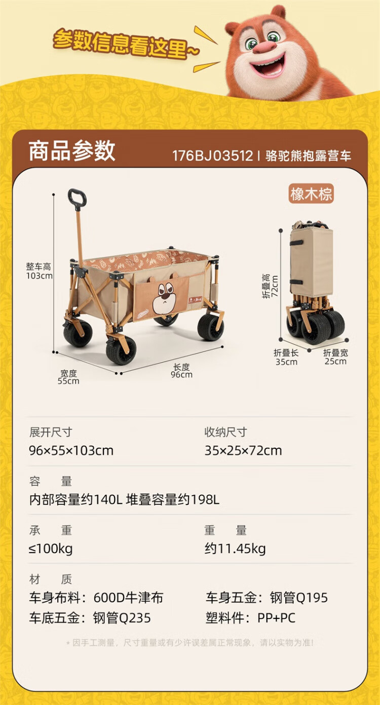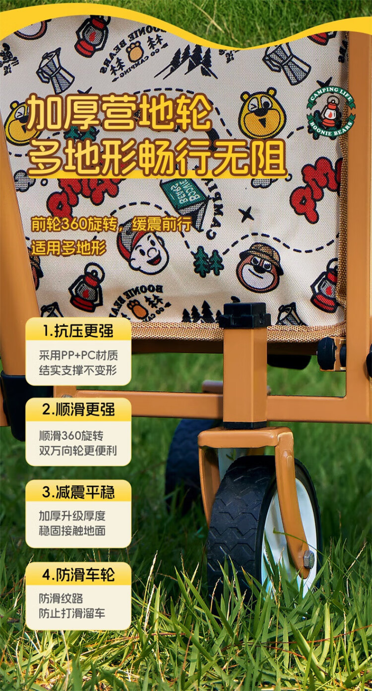 CAMEL【骆驼×熊出没】露营户外折推车叠买菜遛娃手推车野餐遛狗拉车 小森林,176BJ03511, 130L