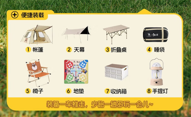 骆驼(CAMEL)露营车户外折叠野营推车营地拖车野餐大容量拉快递儿童可躺 日用款-萌宠粉莓莓超轻折叠车架+