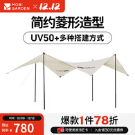 牧高笛(MOBIGARDEN)天幕 户外露营多人大空间遮阳棚防雨棉布大天幕纪元500 象牙白(无支撑杆)
