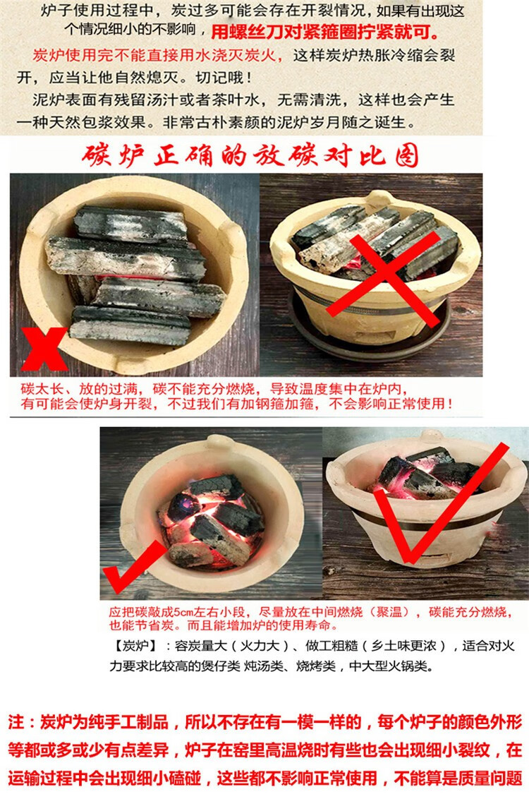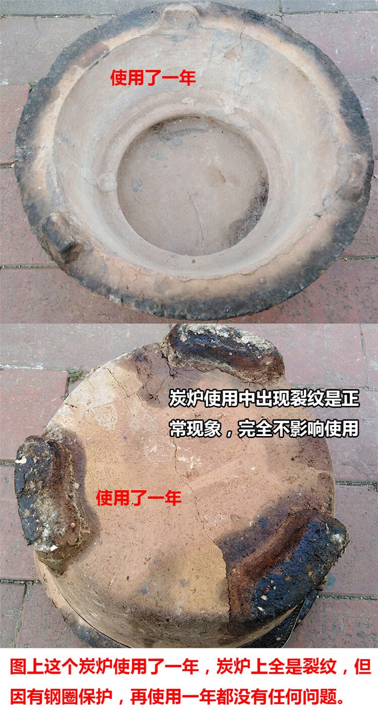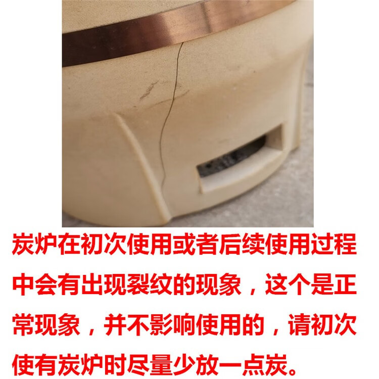 注意:炭炉在使用过程中会出现裂纹是正常现象,完全不影响使用,再有因为炭炉有加装钢圈保护,所以可以放心使用,完全无任何影响,请首次使用炭炉的朋友注意,使用中出现裂纹并不是质量问题,而是正常现象。