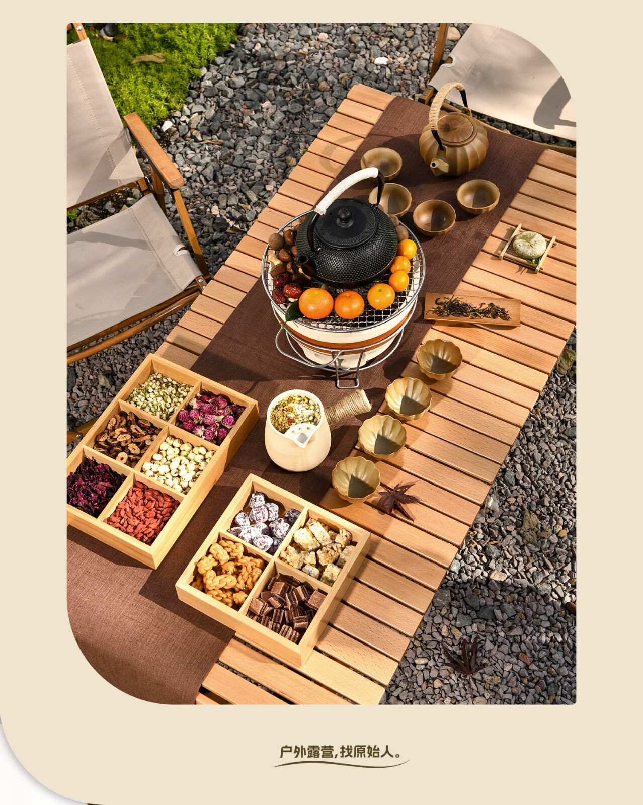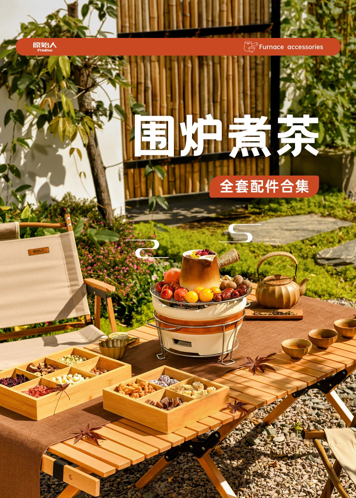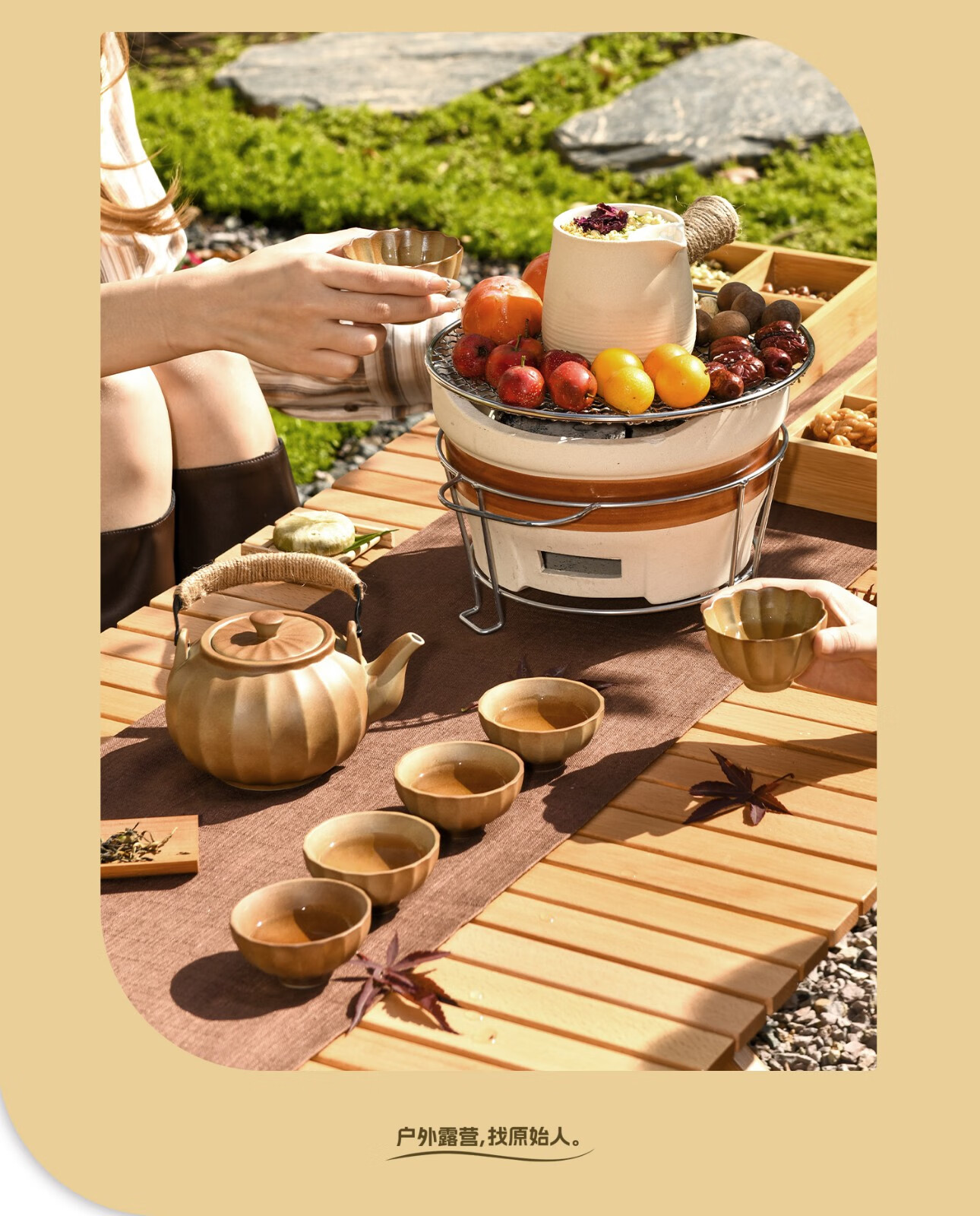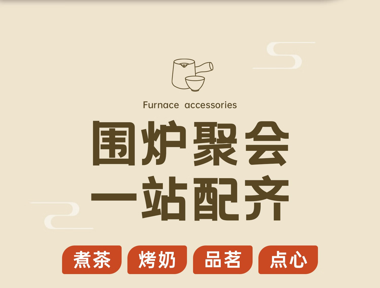 原始人围炉煮茶烤火炉套装煮茶器具全套铸铁茶壶煮茶烤奶茶罐茶杯配件 六宫格点心盒【加厚防水】