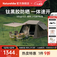 Naturehike挪客2代Village屋脊6.0速开帐篷钛黑胶防晒户外露营防雨过夜3-4人 3-4人一室一厅