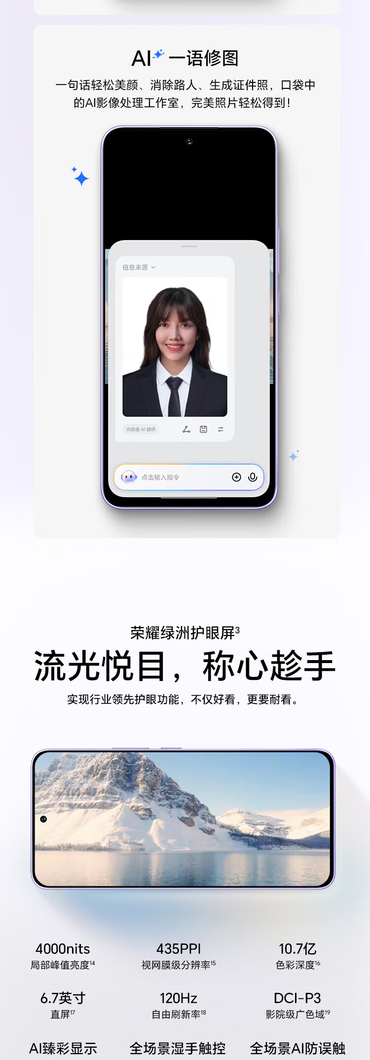 AI大模型,轻薄,高频PWM调光,防水防尘,NFC,红外遥控,大底主摄